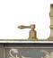 In the primary bedroom’s sitting area, the existing wallcovering complements consoles from 1stdibs and a Hunt Slonem painting. A Tommy Mitchell coffee table accompanies Marc Ange’s Pavone chair and a custom sofa. The John Salibello lamp tops Kelly Wearstler’s Dillon desk.
