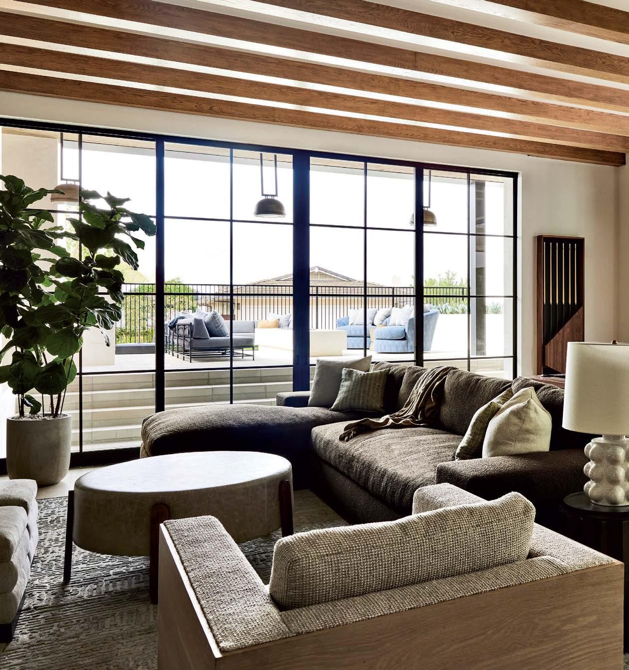 he lure of California wine country is as much about the lifestyle as it is about the virtues of a plummy Pinot noir. From alfresco meals with the freshest farmer’s market ingredients to the rustic, relaxed aesthetic of its famously inviting homes, the region has much to savor. It was precisely the draw of la vida vintner—and its architecture—that infused homeowners Glenn and Lauri Welling’s vision for their ground-up new build in Corona del Mar. “The laid-back lifestyle of Napa was a big inspiration for the overall design and mood of the house,” Glenn confirms. But in this area of Southern California, there’s a key difference: “Instead of looking out onto vineyards, here we have the ocean.”