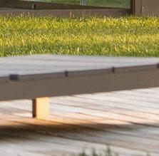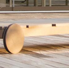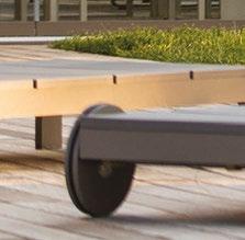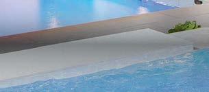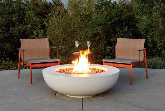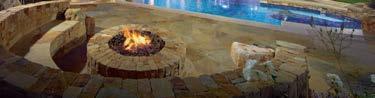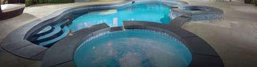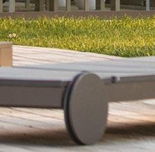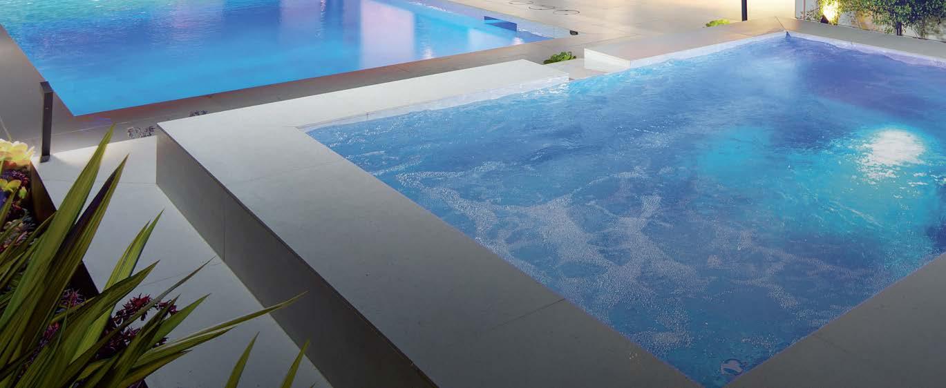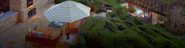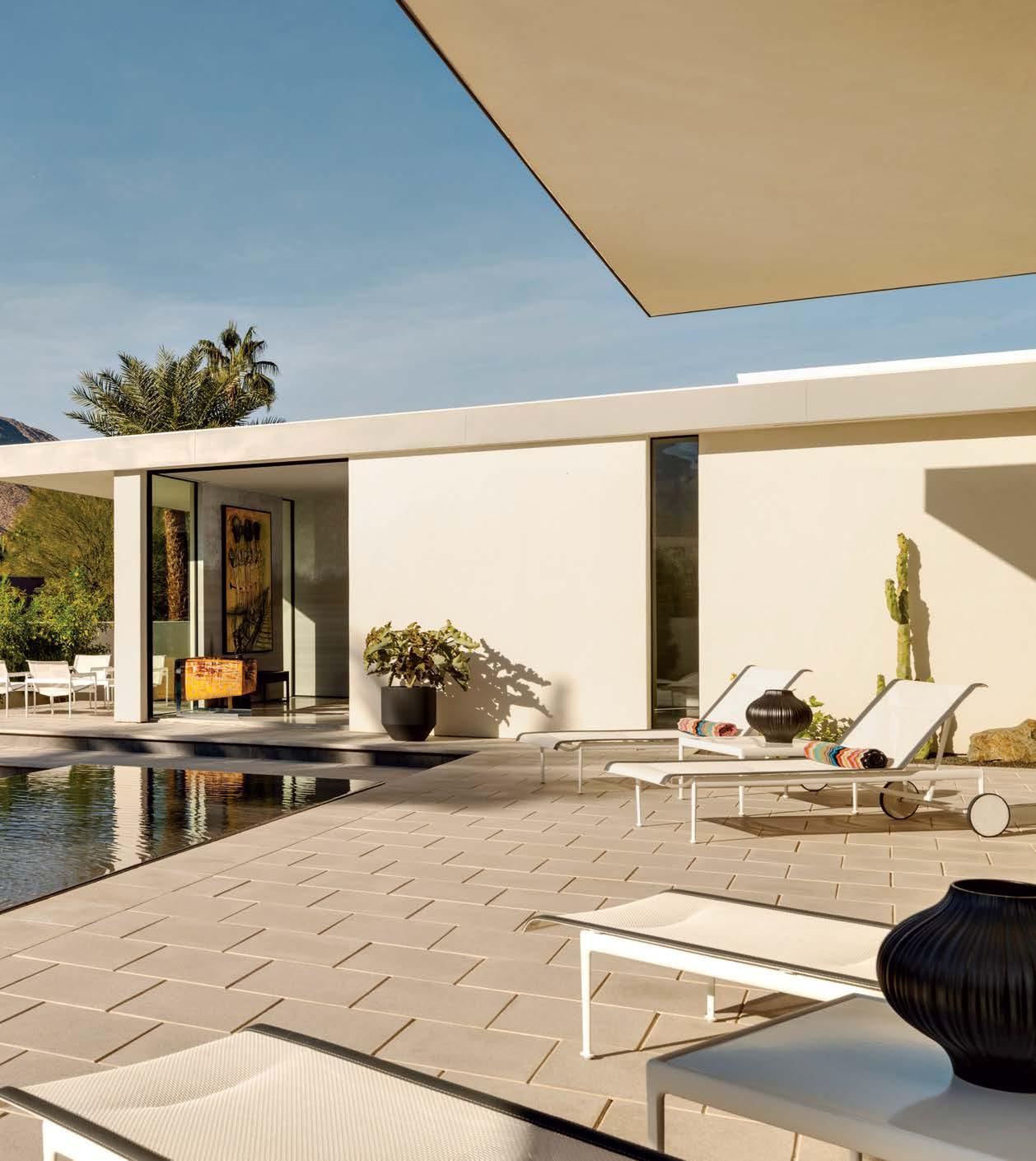 pool deck’s streamlined aesthetic contrasts with the rugged surroundings. Richard Schultz for Knoll 1966 Adjustable Loungers rest atop Artistic Paver decking. The black vessels are Roche Bobois and the planter is from Exterior Illusions.