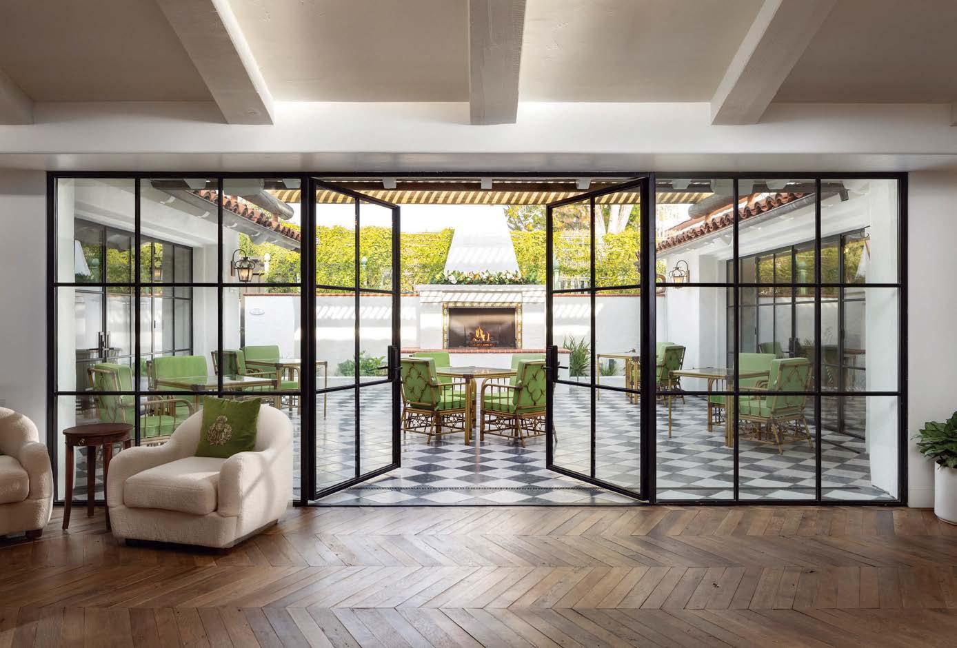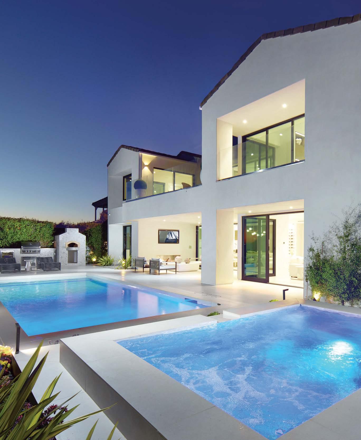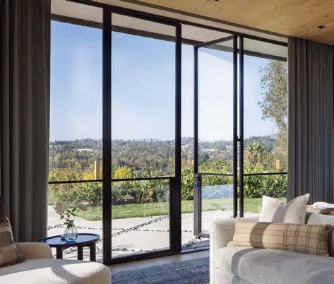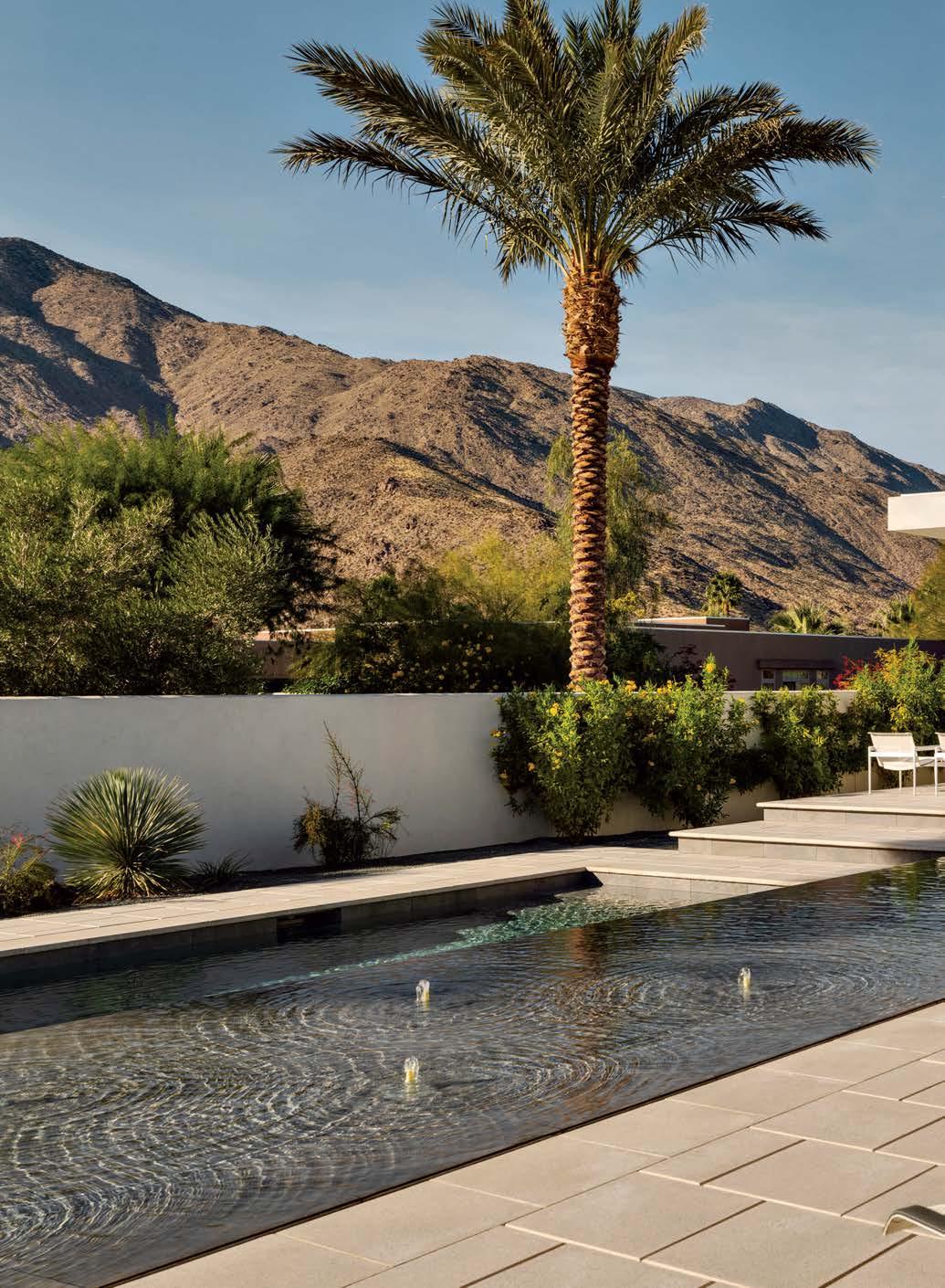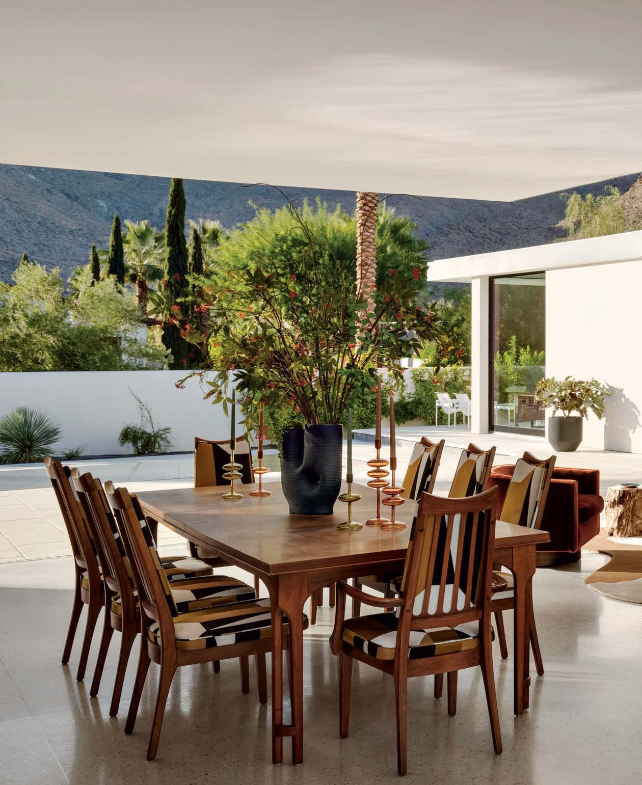 ON THE COVER: A 1960s Brown Saltman dining table and chairs, reupholstered in a Métaphores fabric, strike a traditional note against the contemporary design of a Palm Springs home’s great room. The house, a collaborative effort between designer Mark Brunetz, residential designer Stephen Strugala, general contractor Yann Debonne and landscape designer Al Sambila, features pocketing doors by Fleetwood Windows & Doors to connect the interiors with a patio and pool. Page 180