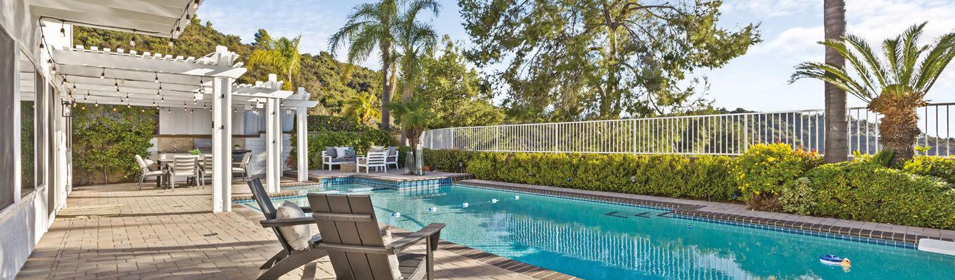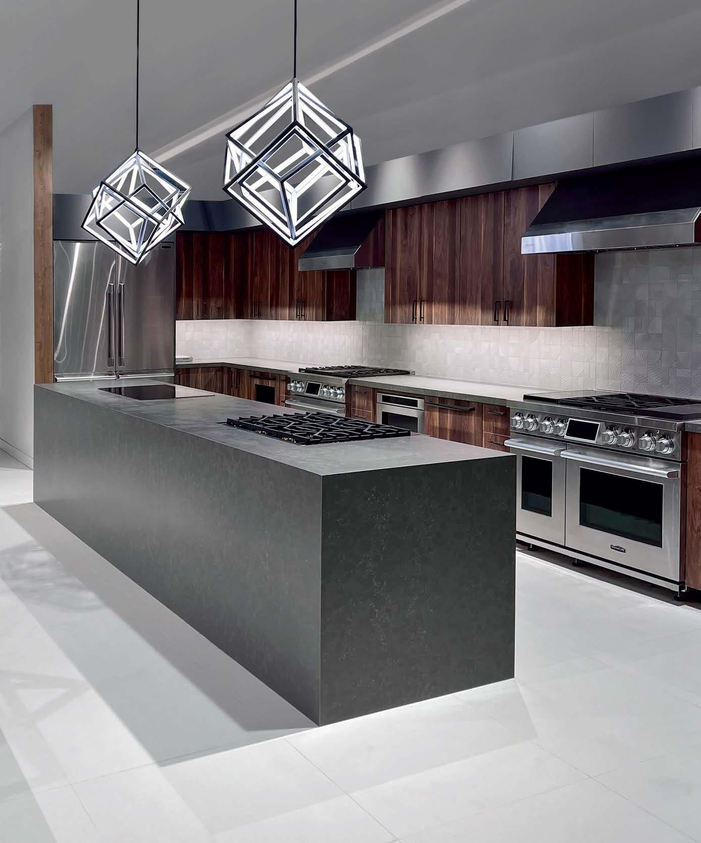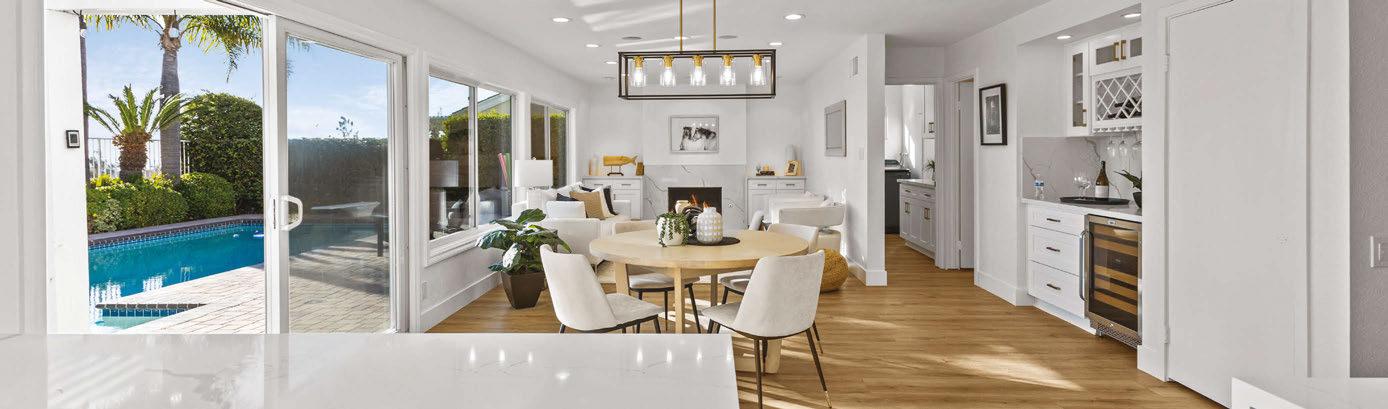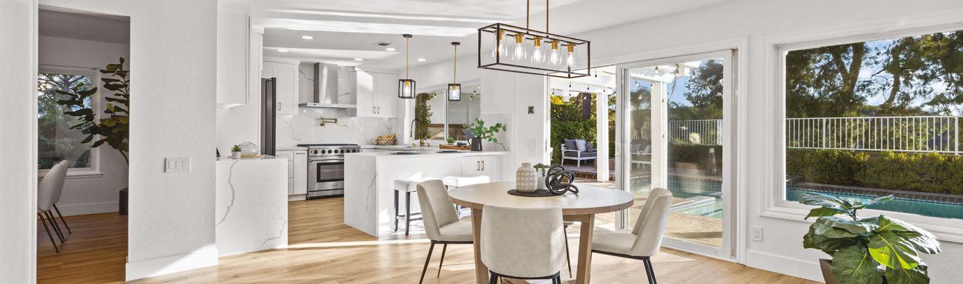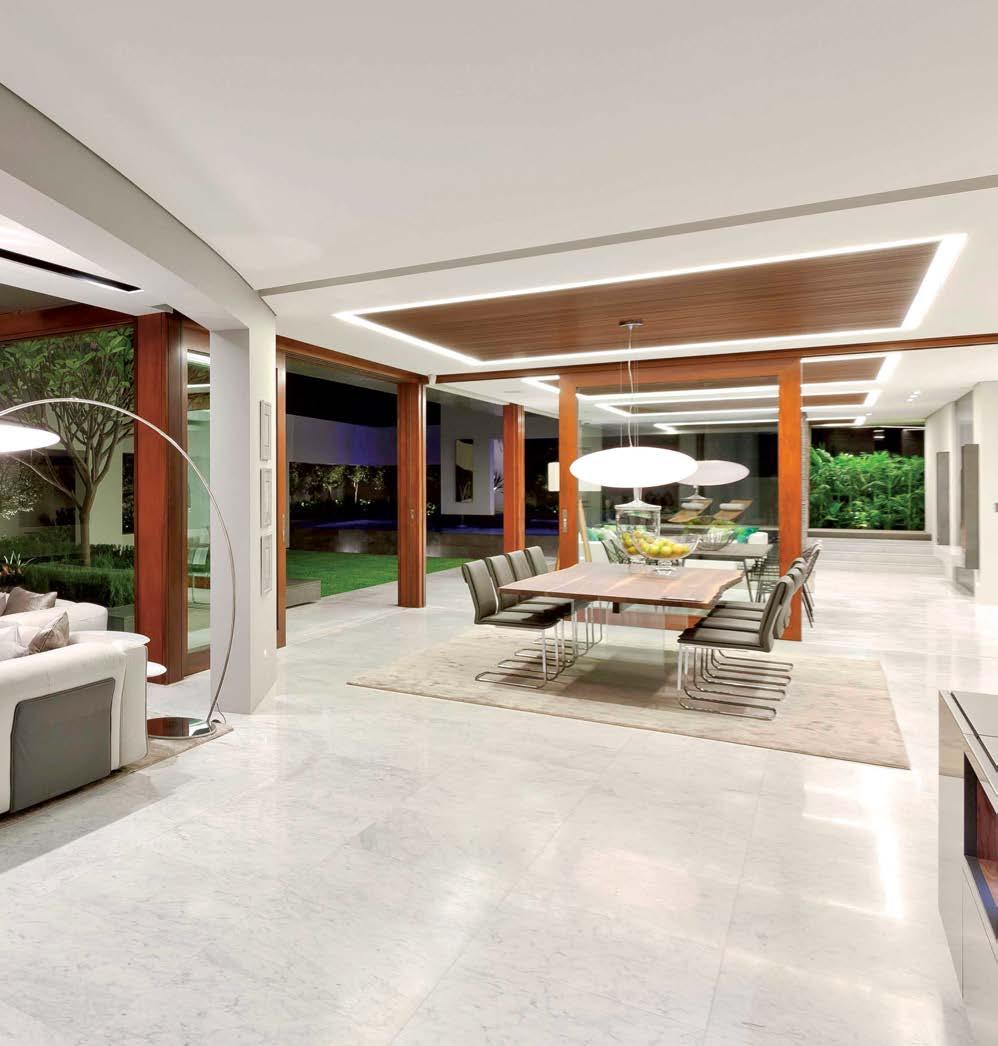 ON THE COVER: A 1960s Brown Saltman dining table and chairs, reupholstered in a Métaphores fabric, strike a traditional note against the contemporary design of a Palm Springs home’s great room. The house, a collaborative effort between designer Mark Brunetz, residential designer Stephen Strugala, general contractor Yann Debonne and landscape designer Al Sambila, features pocketing doors by Fleetwood Windows & Doors to connect the interiors with a patio and pool. Page 180