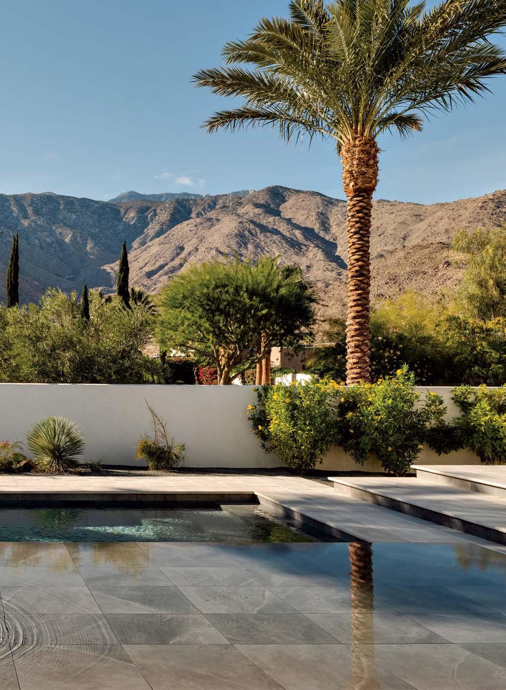 The plan was largely driven by the site. Cradled by the mountains and with magnificent vistas, it has a slight elevation that offers extra privacy. There was also Palm Springs’ architectural legacy to consider. “We wanted a contemporary home that would celebrate the setting with elements of midcentury modern without being a caricature,” Tom shares, referencing the area’s plethora of midcentury modern homes. “No glossy white box; no pops of turquoise.”