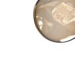 Atelier001 pendants from Garde oversee the entryway, where designer Adam Hunter placed a round Holly Hunt walnut table. The artwork is by Dan Shaw-Town. Ocean views and a glimpse of the pool are visible through Arcadia Custom doors. The vessels are Palacek.