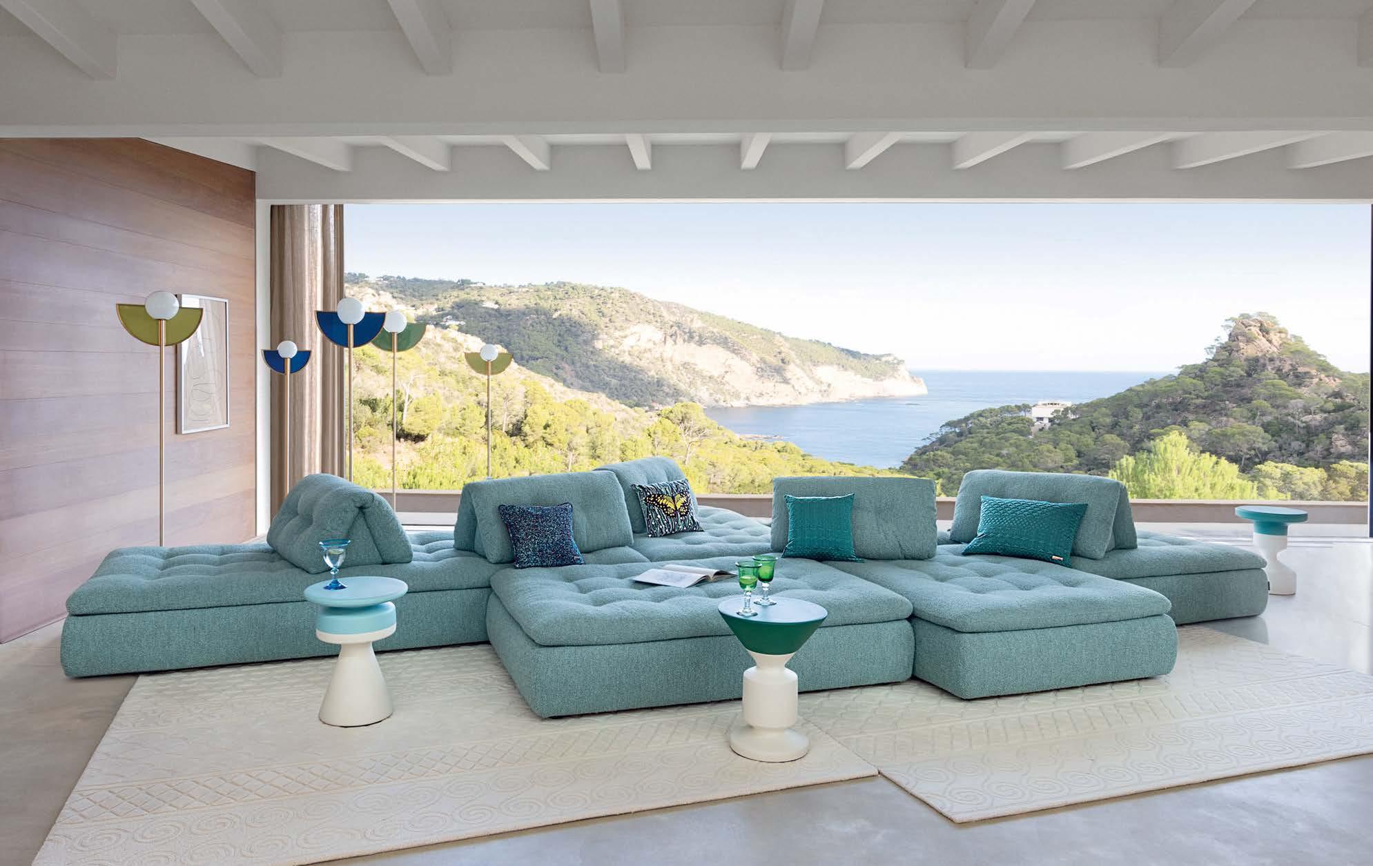 Conversation. Modular sofa, designed by Philippe Bouix. Waterline. Occasional tables, designed by Cédric Ragot. Floraison. Floor lamps, designed by Bernhardt & Vella.