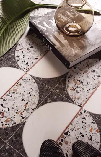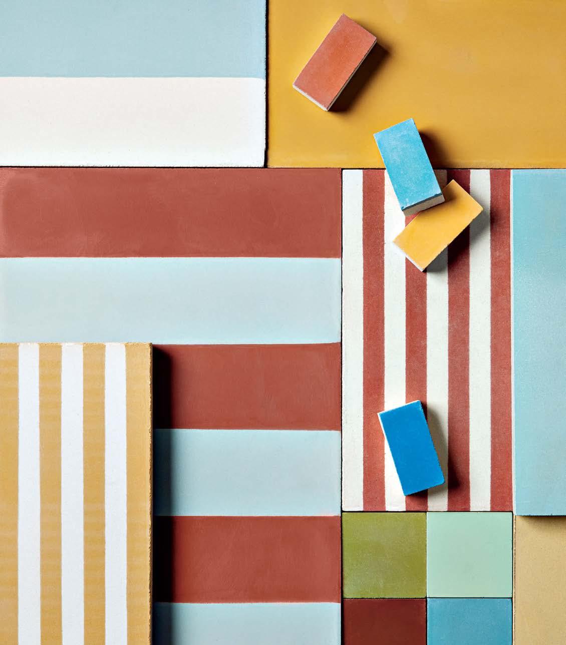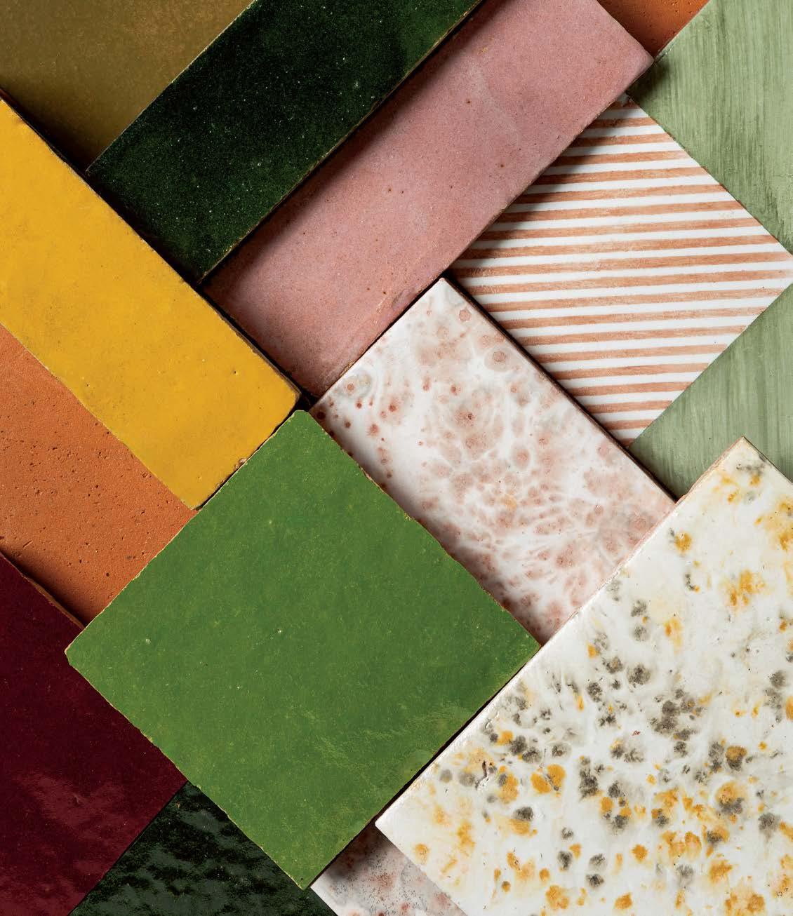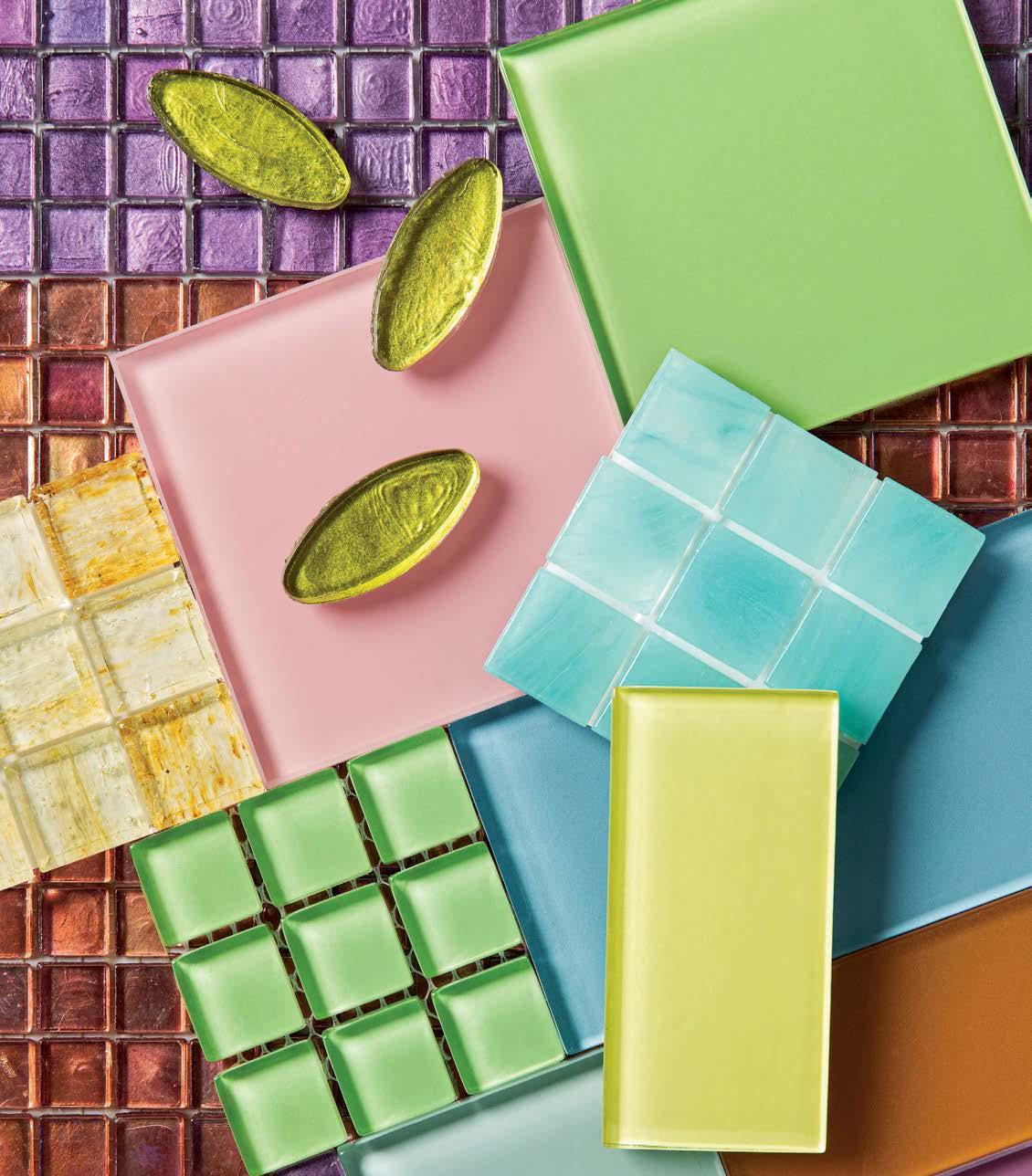 100 MATERIAL Bright colors provide a cheery dive into the latest trends in tile.