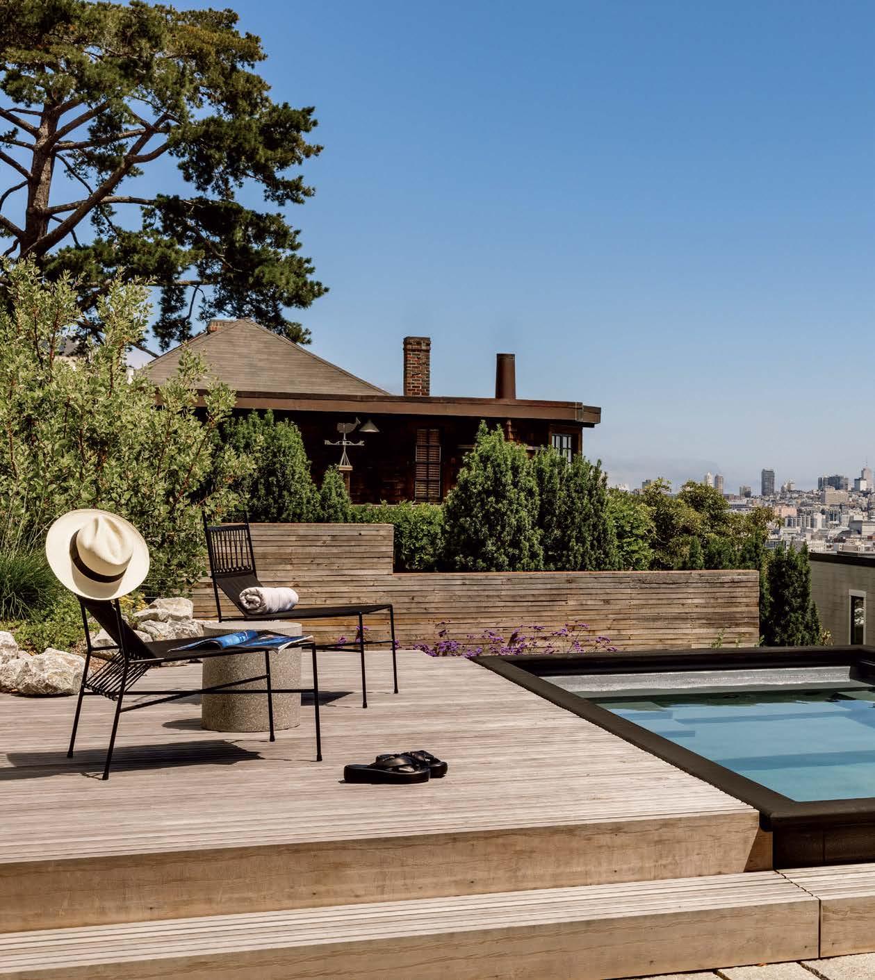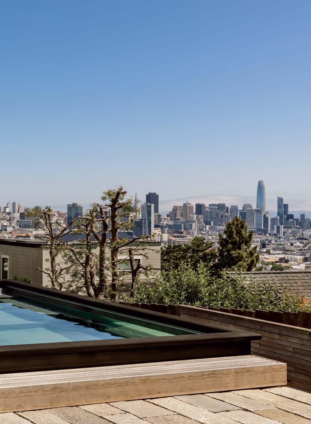 Yellow cedar decking surrounds the pool, from which the owners can take in stunning city views. Landscape designer Hyunch Sung selected drought-tolerant yet sculptural plantings for the border gardens.