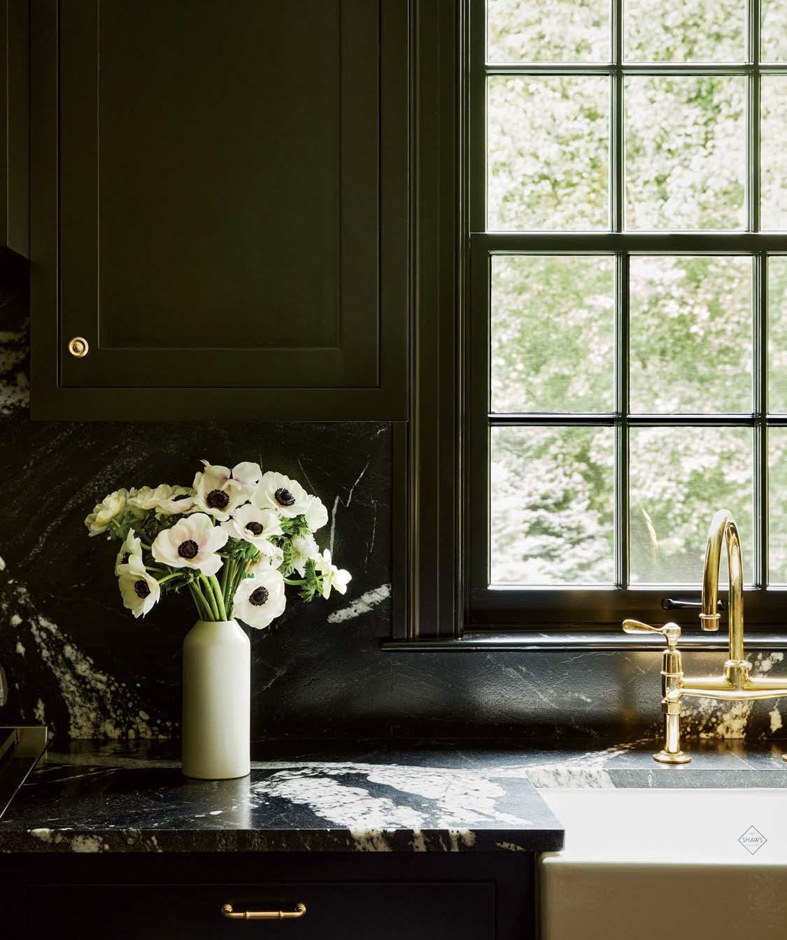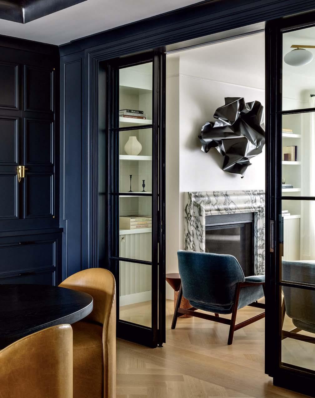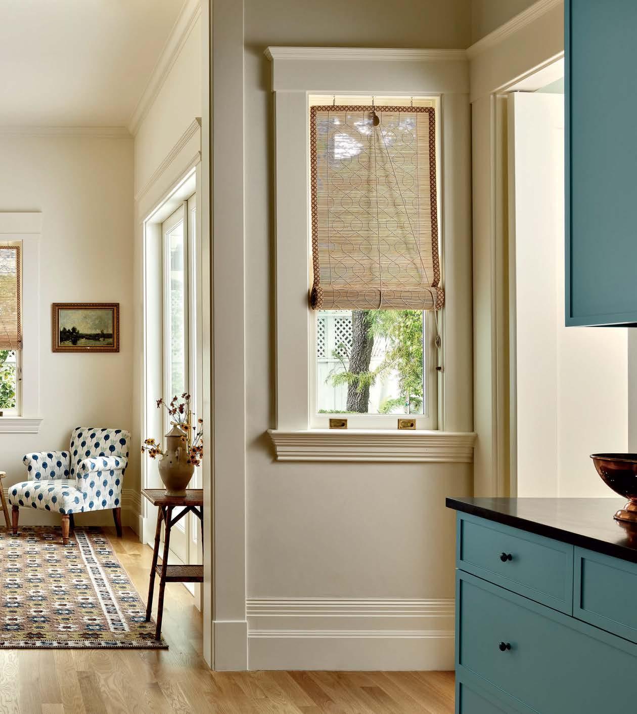 It all started with a leaky roof— unwanted water seeping into the walls of a pre-1906 earthquake Edwardian in Pacific Heights. Not only did the elements imperil the original 1899 millwork, but they also endangered a lifetime of memories for the owner. This abode is her childhood home and the place she and her husband raised their two college-aged sons. Repairs and updates were needed, but any renovation had to remain faithful to decades of family nostalgia. They entrusted the extensive remodel to designer and long-time family friend Leah O’Connell, who treasured her own youthful memories of the house. “This family and home have forever been in my orbit, so the project was close to my heart,” she shares. Joined by architect Brooks McDonald and general contractor JB Ferrarone, she approached changes with a tender eye to the past. “We had to take this house down to the studs and put it back up exactly as it would have been—but a little better,” the designer adds. The work included replacing the original box sash windows with faithful reproductions—doublepaned models this time for better insulation. The interior baseboard, trim and decorative handcarved millwork received the same meticulous treatment, with worn and damaged pieces “removed, refurbished and reinstalled,” Ferrarone says. “Anything that needed to be built was an exact replica of the original.” Less-than-authentic features that were added by prior generations, like the dining room’s shutters, were also recreated out of sheer affection. “For the family, those shutters have always been there,” O’Connell shares. “There were many sentimental choices like that because they hold a lot of memories.”
