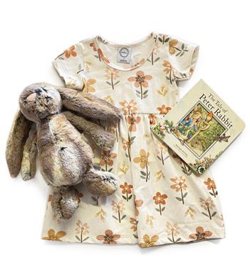 This spring dress is comfortable for daily wear to play, twirl, and imagine in. The shape and cut makes this our favorite essential for your girls closet. Pair with the classic Tale of Peter Rabbit story and a soft cuddly jellycat bunny and make all of her dreams come true. Shop online today.