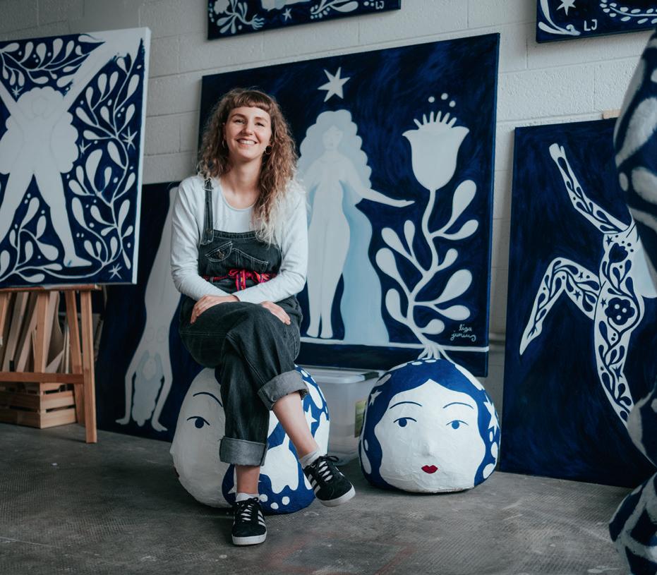 Quand on lui pose la question sur ce qui l’a poussée à devenir artiste, Lisa Junius répond timidement que son grandpère et sa mère peignaient… Son grand-père ? Il s’appelait JeanPierre précise-t-elle. Junius, comme elle. Lisa Junius est donc la petite-fille du peintre luxembourgeois Jean-Pierre (dit Jim) Junius, artiste internationalement reconnu, et parti il y a peu. Rien que ça ! Mais sa carrière à elle débute seulement. À 29 ans, la jeune artiste « pluridisciplinaire », comme elle préfère le rappeler, s’est installée récemment en tant qu’artiste indépendante. Après un Master en arts plastiques à Strasbourg, celle qui a grandi à Mondercange s’installe en 2017 au sein du « Creative Hub » de Differdange, le fameux « 15-35 ». Ici, les créatifs se côtoient et s’entraident. « C’est un espace de travail très agréable avec beaucoup de ressources. On échange souvent avec les autres, on demande leur avis, il y a même parfois des collaborations. Et si on a besoin d’aide, on toque à la porte d’à côté. Pour la compta par exemple, ça peut aider parfois », s’amuse-t-elle.