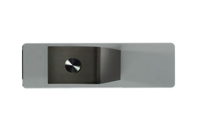 PRISMA STEEL CONSOLE Design ∙ Riccardo Lucatello Metal base in Scratchy Steel Bevel Wood top in matt lacquered Latte finish Wall fixing - 158 x 47 x 75 h Scratchy Steel finish detail UFFICIO OFFICE CONSOLLE CONSOLES