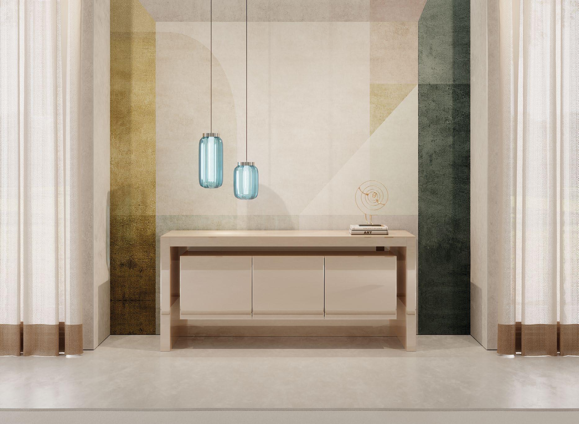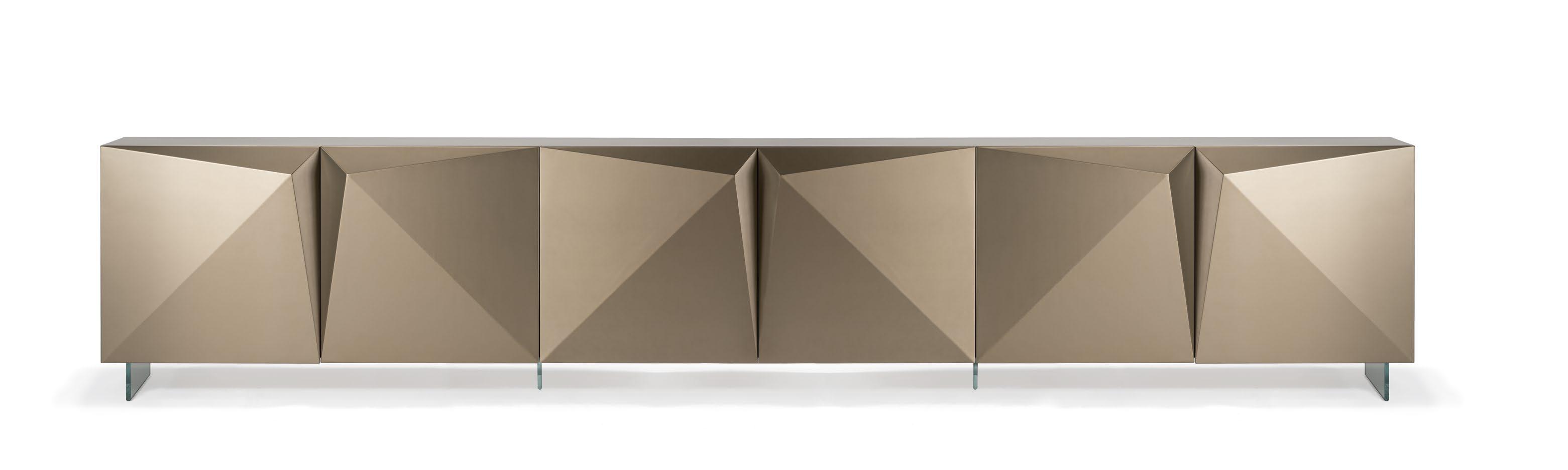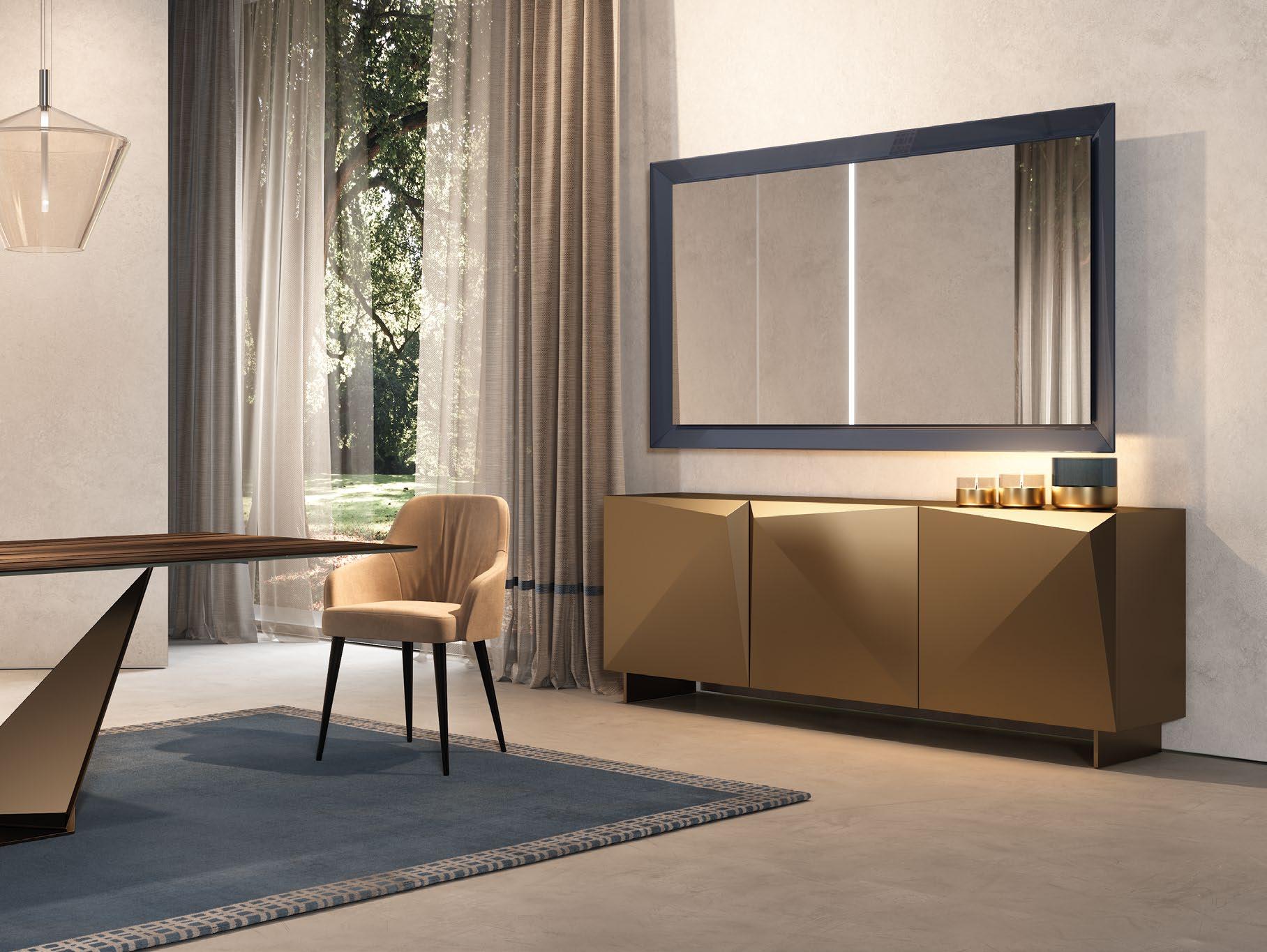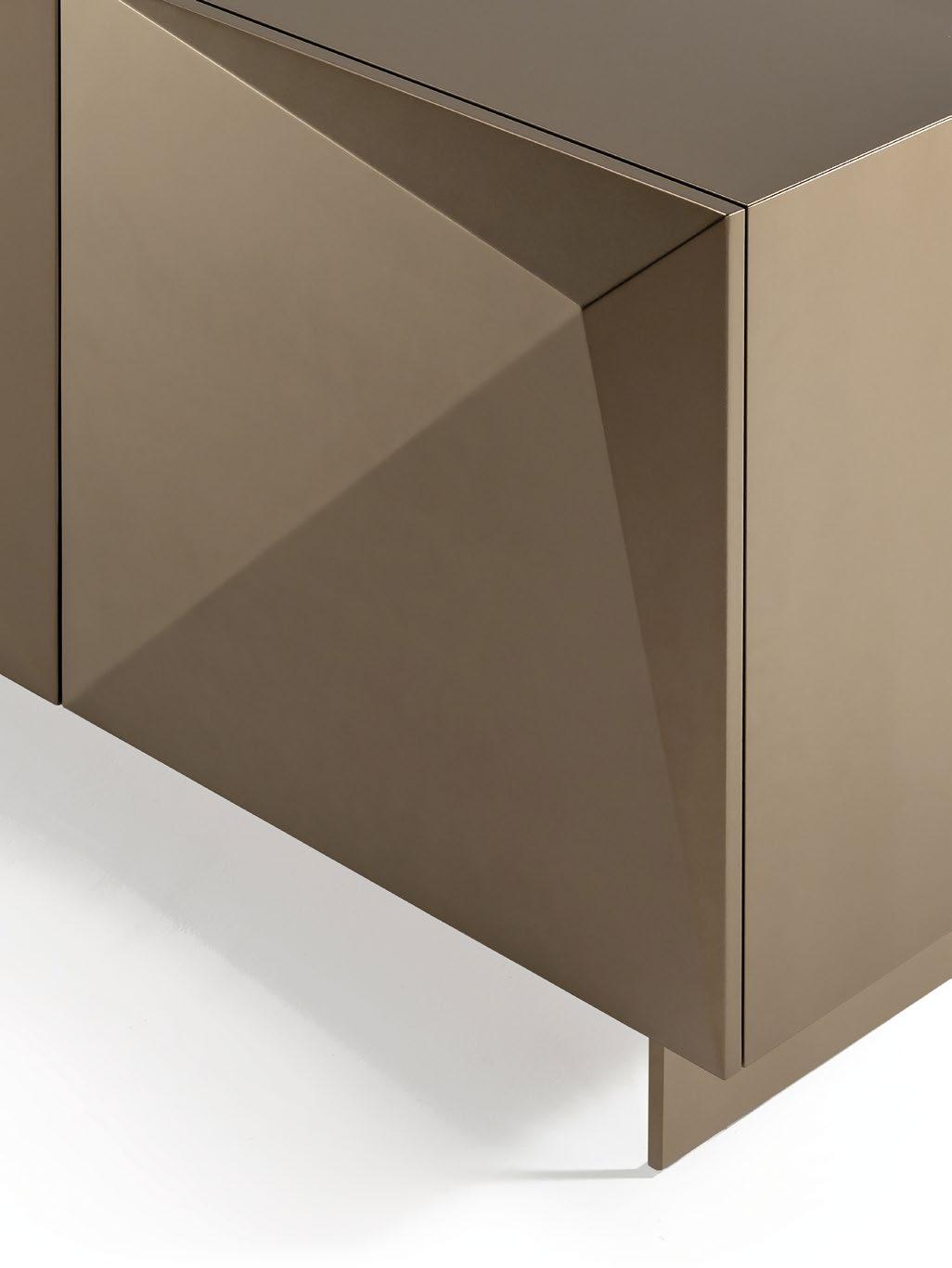 IMPACT BUFFET Design ∙ R&C Reflex Wooden structure in shiny lacquered finish Latte colour Decoration in Gold finish 210 x 53 x 74 h Decoration detail in Gold finish Wooden structure in shiny lacquered finish Latte colour UFFICIO OFFICE