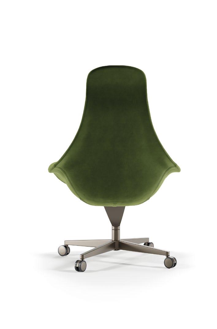 ZENITH HIGH CHAIR OFFICE Design Marco Cocco Structure upholstered in fabric Extra Amsterdam 38 Base in Bronze finish with wheels 77 x 84 x (46) 120 h UFFICIO OFFICE CONSOLLE CONSOLES