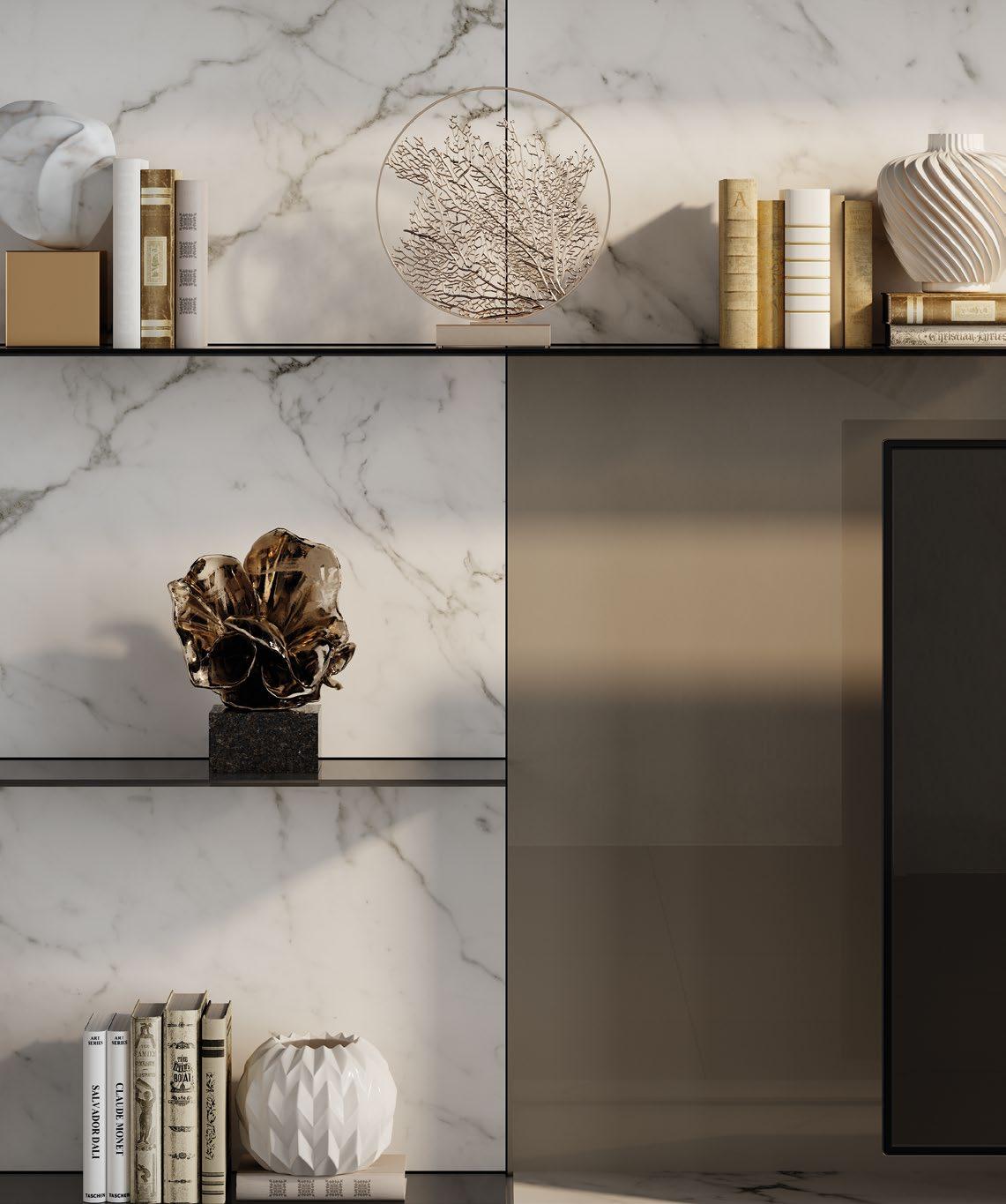 in MarmoReflex Calacatta Oro 181 x 58 x 86 145 h COCO DE MER BUFFET Design ∙ Riccardo Lucatello