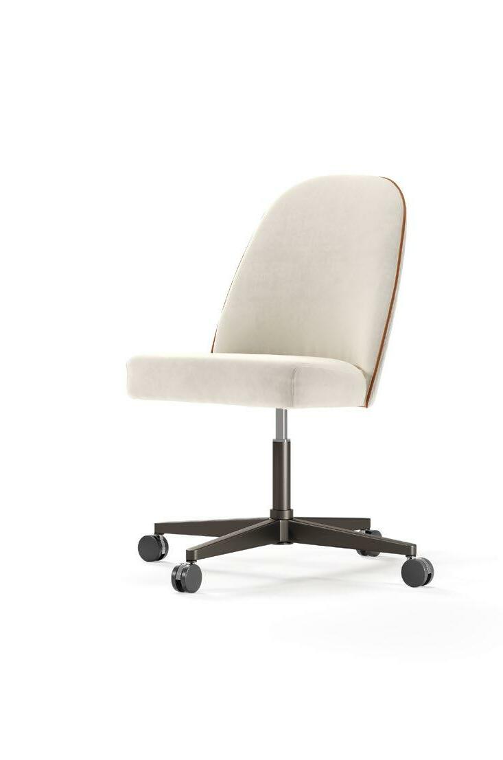 ZENITH HIGH CHAIR OFFICE Design Marco Cocco Structure upholstered in leather Colorata Cognac Base in Bronze finish with wheels 77 x 84 x (46) 120 h Curved shape detail in leather Cat. C Bianco UFFICIO OFFICE CONSOLLE CONSOLES