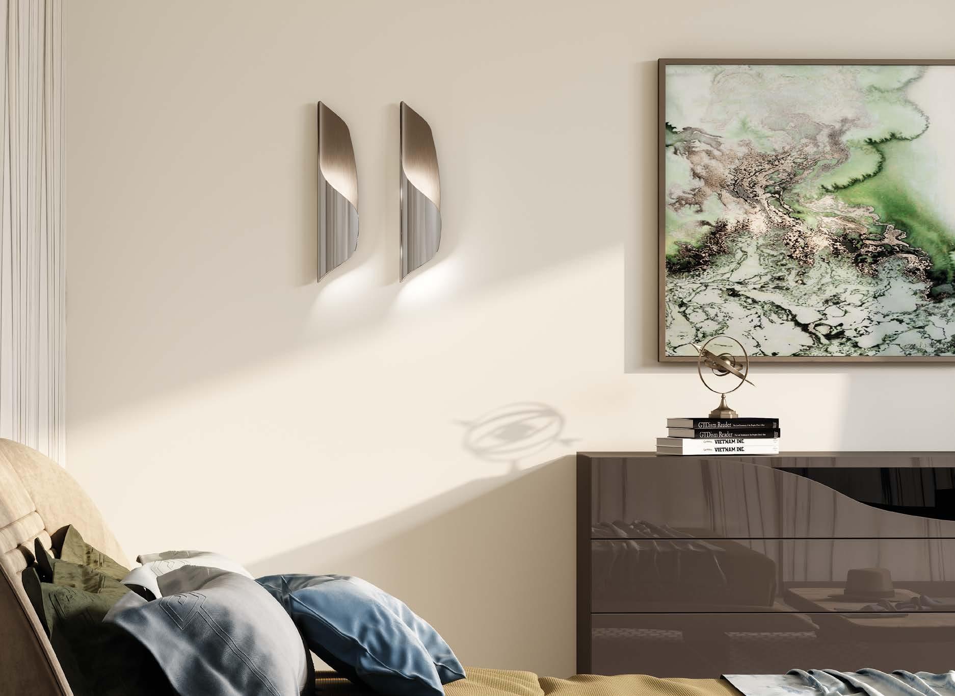 Segno applique in curved polished steel with internal satin Brass 104M finish and LED