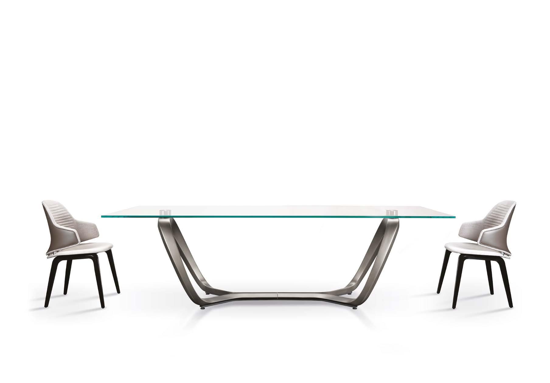 TAVOLO SEGNO 72 Rettangolare 300 vetro / Rectangular 300 glass Piano in vetro temperato sp.15 mm filo lucido Base in materiale composito rinforzato in metallo in finitura satinata Titanium 101MTop in transparent tempered glass 15 mm th. with polished edges Base in composite material with metal support in satin Titanium 101M finish 1 2In foto / On image: 75 300 120 DININGDINING