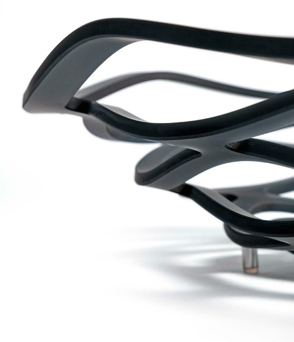 Wooden structure in shiny lacquered finish Nero Beluga colour Decoration in gold finish