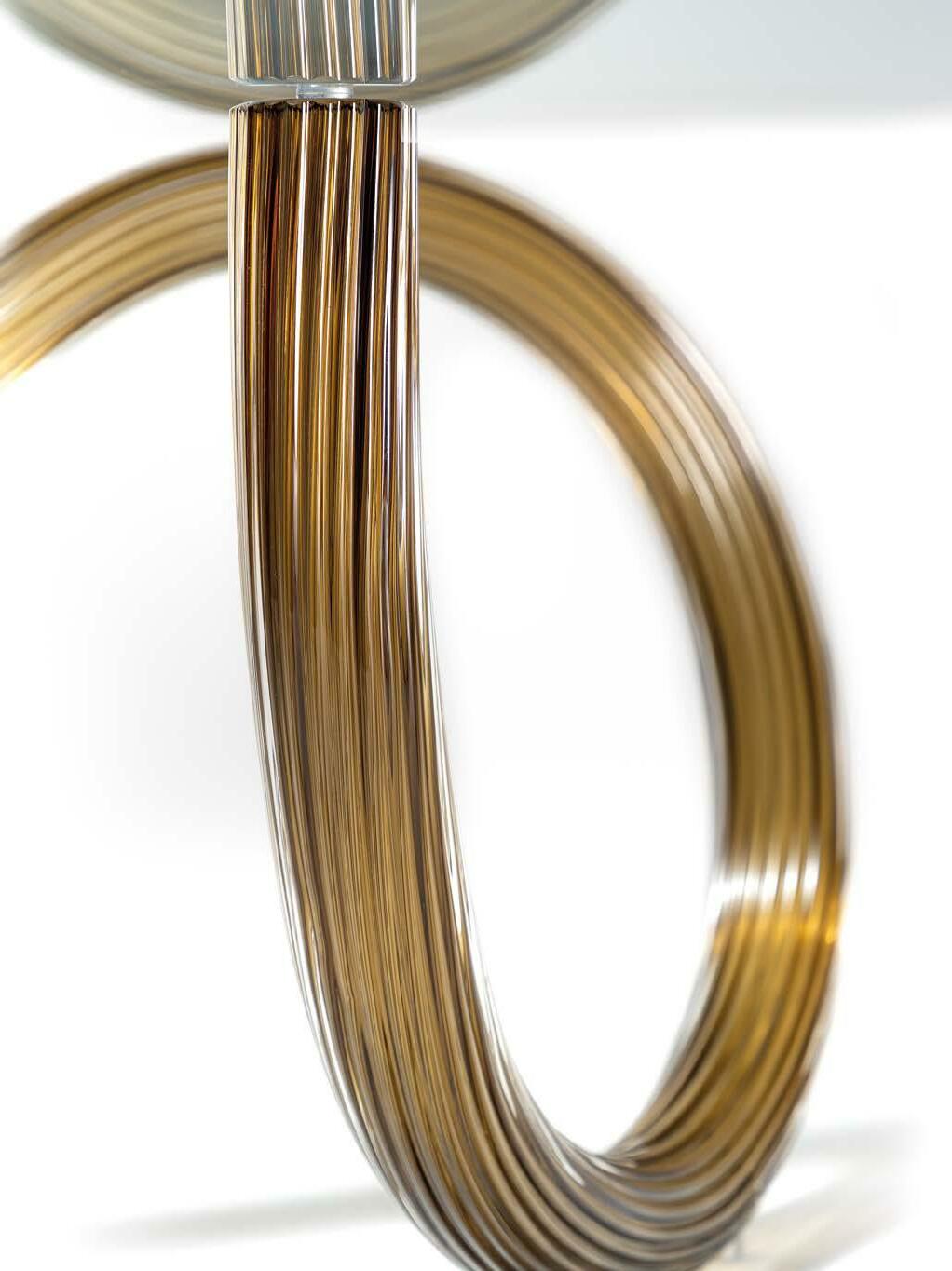 Glasstop with 45° bevel 3 legs in ribbed Murano glass custom colour on client request Ø120 x 35 h