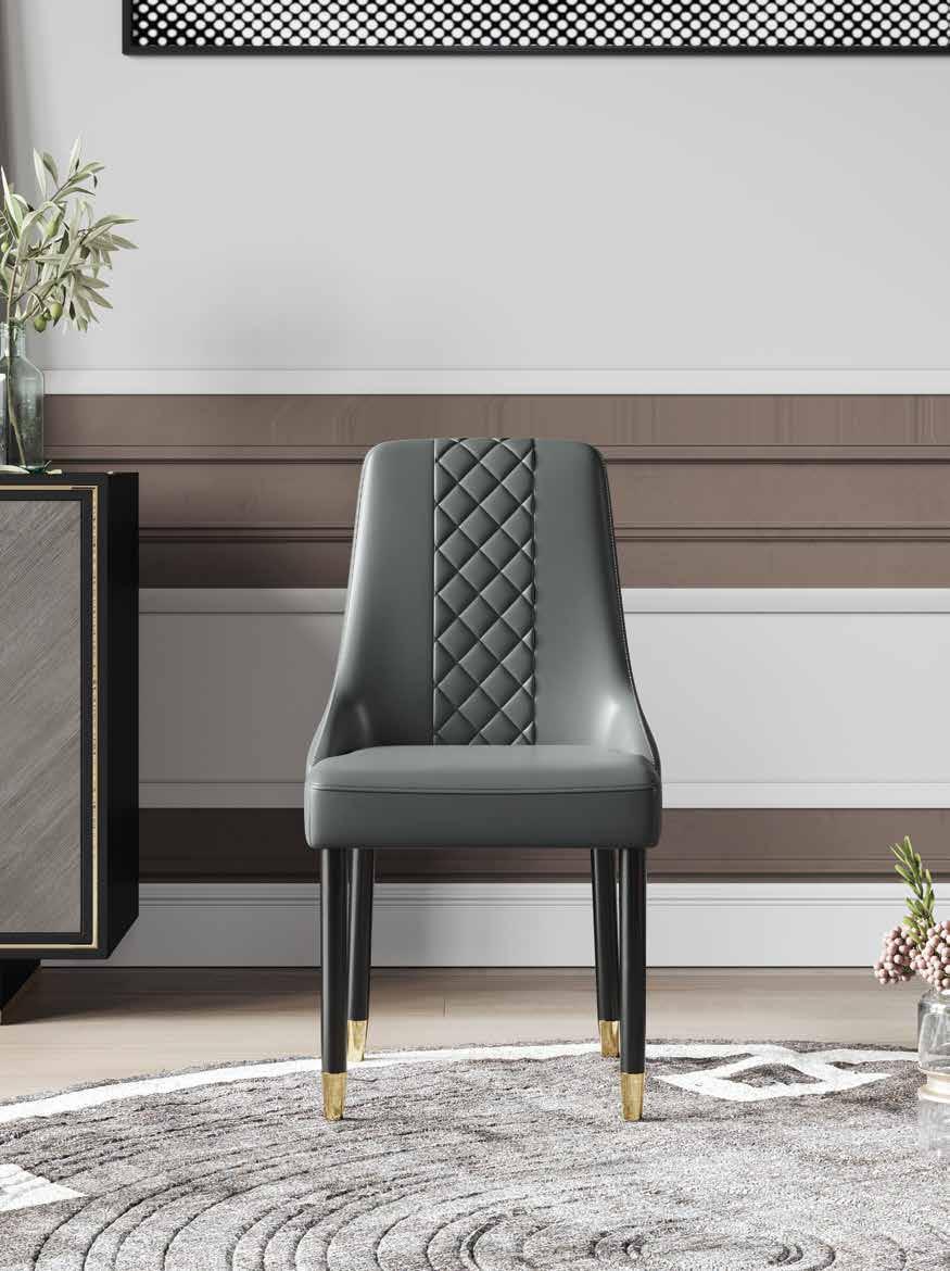 Chair Product code: FA14018-02 L500 x D590 x SerreH930Thisproductismadeof:foam,ecological leather / natural leather, stainless steel with gold finish. 33