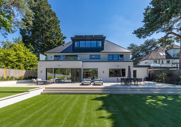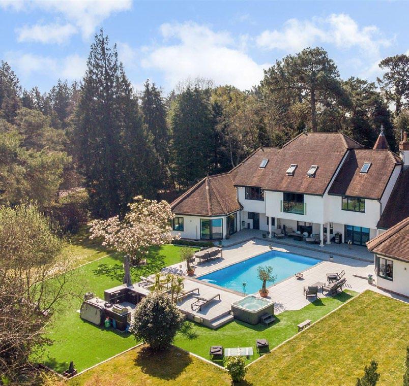 “The imposing elevations are matched by the impressive size of the house which boasts built from extending to over 6,800 square feet. The house was designed with entertaining in mind so the top floor is dedicated to an entertaining suite which includes relaxed sitting, a bespoke bar and there is even a gaming table. The leisure theme continues to the rear garden where the decked terrace includes an outdoor swimming pool and a specially constructed outdoor bar / kitchen area.”