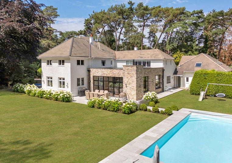 “This is one of the principal homes in Branksome Park. It occupies a magnificent plot turning the corner of Western Avenue and Bury Road. The largely level grounds benefit from a sunny aspect, something which is especially rare to find. The distinctive architecture includes no less than three turrets and the built form extends to over 6,700 square feet. The flexible layout is large and impressive and it includes six sizeable bedrooms, six bathrooms, five receptions and an integral garage.”