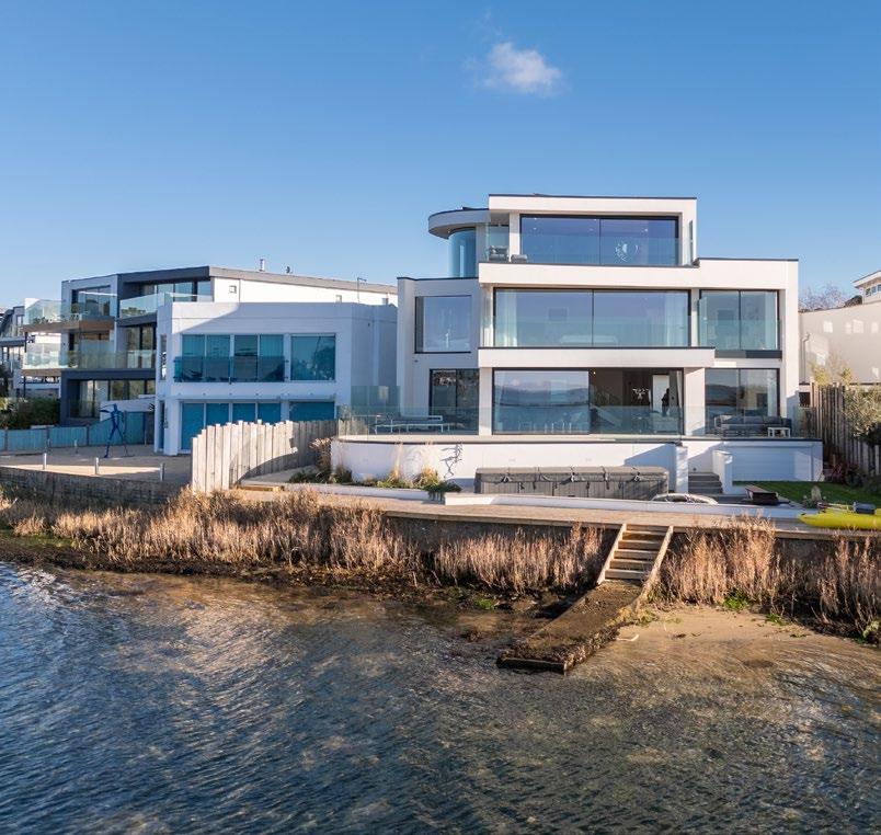“This is a wonderful example of contemporary architecture but to a design which truly showcases its waterfront location and its connection to the Blue Lagoon. The built form extends to over 6,100 square feet and it includes four stunning bedrooms, each with en suite facilities, a home office, a hugely impressive kitchen lifestyle room complete with spiral wine cellar and a top floor suite of entertaining rooms including a luxurious bar and a separate sitting room with dedicated terraces.”