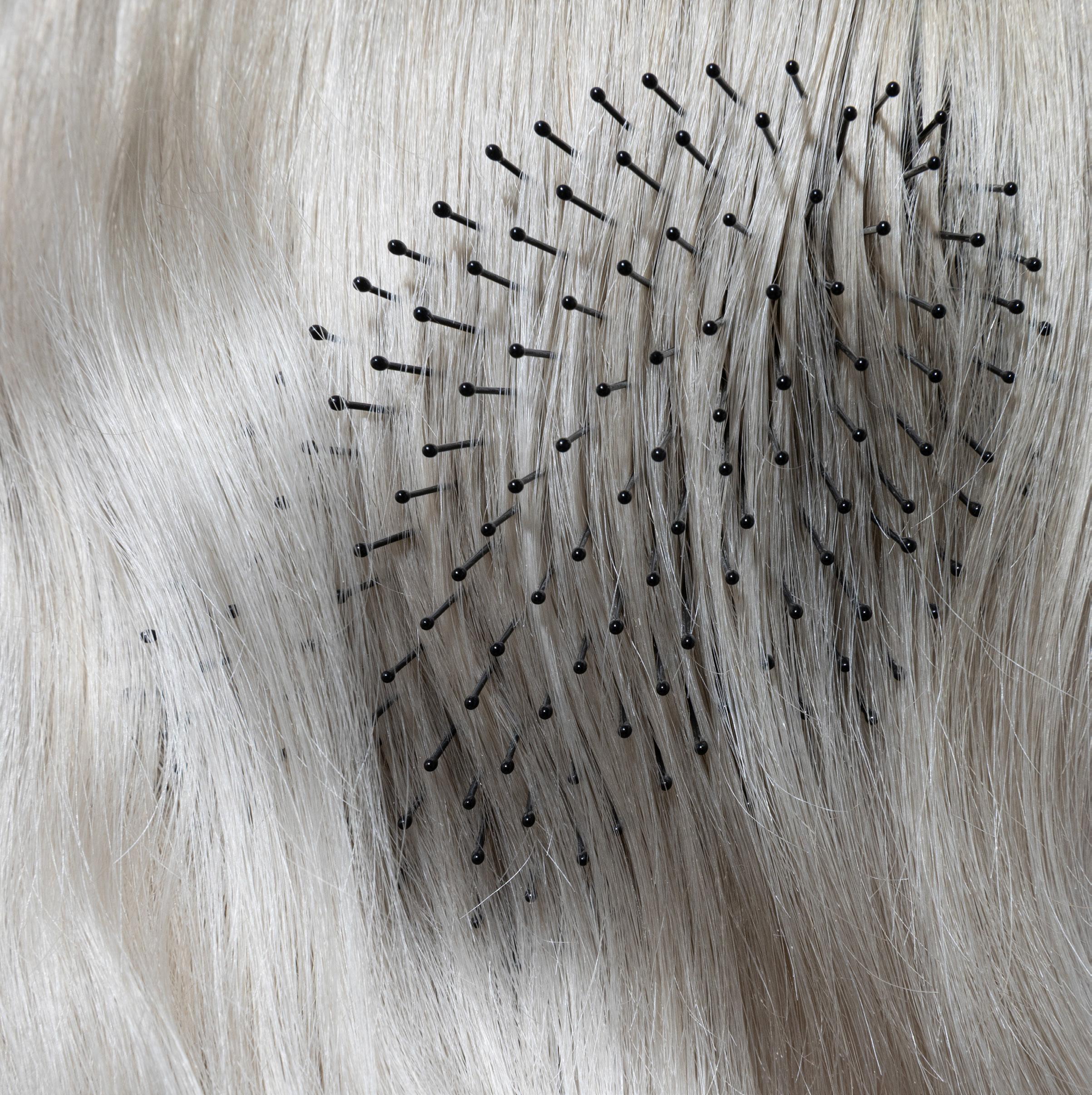 Ergonomically designed vegan bristle technology. For the cruelty-free creation of a variety of styles. Gently detangles without tugging or snagging hair. Provides static-free shaping, movement and bounce. Perfectly balanced grip and glide for all hair types.