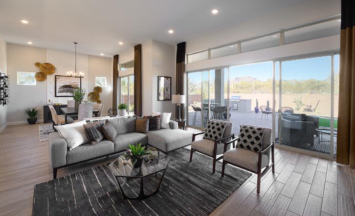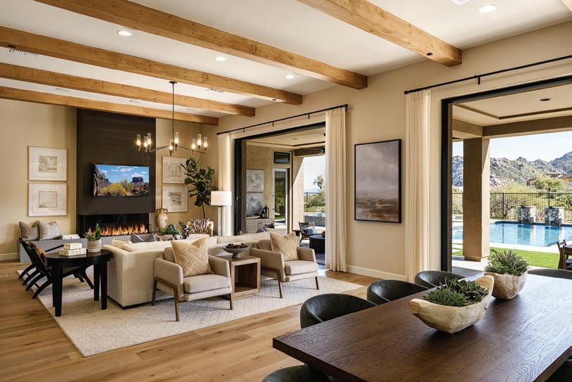 15935 E TOMBSTONE TRAIL, FOUNTAIN HILLS | Mountain views, open great room and numerous outdoor spaces allow the party to flow seamlessly inside and out. The centerpiece of the home is the dining and cocktail area. Fireplace wall features a 2-sided fireplace and serves outdoor media + recreation area. Professional grade kitchen features a 15’ island and a nearby media area is perfect for game day or movie night. 6 Suited Beds / 2 Half Baths / 6,192 SF / Pool & Spa / 3+ Car Garage | $3,500,000 Contemporary in FireRock Country Club FOUNTAIN HILLS Dori Wittrig 480.837.1331 HomeTeam@SonoranLifestyle.com www.SonoranLifestyle.com TEAM THE LuxuryHomeMagazine.com | 59