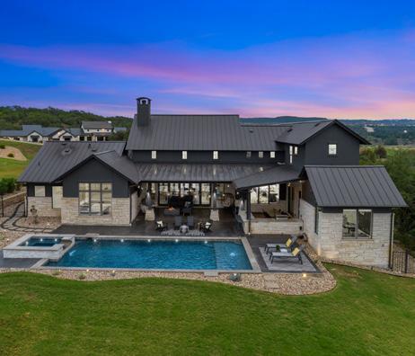Our featured cover home on page 25, represented by Julie Lavender of All City Real Estate, and built by Terra Builders , showcases a 1.1 acre estate with unparalleled indoor and outdoor living spaces, offering breathtaking views of Lake Travis and Lakecliff golf community holes 4-6.