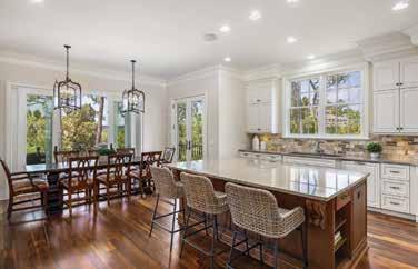 Designed with culinary enthusiasts in mind, the kitchen is a masterpiece of both functionality and style. Equipped with top-of-the-line Wolf double ovens, a Wolf gas cooktop, a paneled Bosch dishwasher, and a Sub-Zero paneled refrigerator, this gourmet haven is ideal for hosting large gatherings. A spacious center island with seating, a wine storage area, and a wet bar with an ice maker and wine cooler ensure seamless entertaining. An adjacent prep kitchen offers additional counter space, cabinetry, and a second paneled Bosch dishwasher, catering to every culinary need.