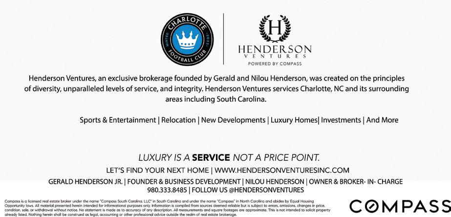 20345 Enclave Oaks Court $3,872,000 10320 Sweetleaf Place $2,395,000 13601 Girl Scout Road $1,525,000 16823 Reinsch Drive $1,675,000 17613 Stuttgart Road $1,950,000 8993 Unity Church Road $2,785,000 10829 Green Heron Court $2,290,000 18224 Peninsula Club Drive $2,275,000 114 Cape Cod Way $4,041,026 Sotheby’s International Realty® and the Sotheby’s International Realty logo are registered service marks used with permission. Each office is independently owned and operated. SOLD SOLD SOLD SOLD SOLD SOLD SOLD OVER $150,000,000 SOLD SINCE 2021 You deserve the best representation when selling your home, call me at 704.572.6070 to find out how I can help you! Better Marketing. Better Results. 20927 Bethelwood Lane $6,800,000 15346 June Washam Road $2,265,000 14429 Brick Church Court $2,970,000 SOLD BEST OF THE BEST 704.572.6070 Ben.Bowen@PremierSIR.com BenBowen.PremierSothebysRealty.com BEN BOWEN SOLD SOLD SOLD SOLD 8 | LuxuryHomeMagazine.com