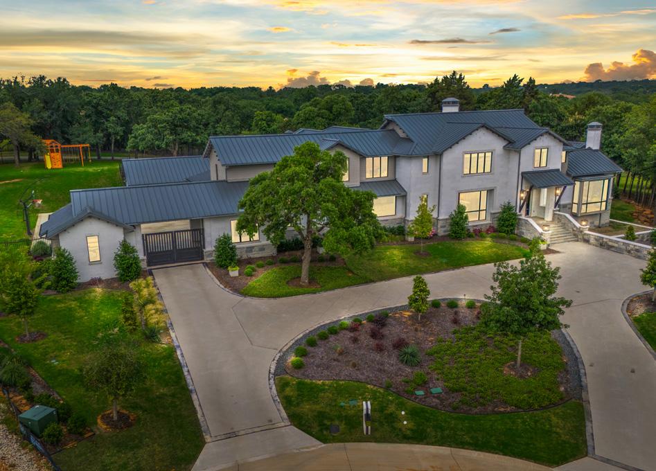 TUCKED BEHIND PRIVATE GATES in the heart of Southlake, this newly constructed estate nestled on a 3.62-acre lot boasts plentiful amenities, a fully automated smart home system, and elegant designer touches throughout its three levels. Enter the marbled foyer boasting two hand-crafted crystal chandeliers adorning the 35-foot-high ceilings and ascend the sweeping staircase to find the owner’s suite, 4 secondary bedrooms, and the covered balcony showcasing all-encompassing views of the rolling green lawn. Whether down one of the staircases or the elevator servicing each level, arrive at the walkout basement with over 6,300 square feet of entertainment space hosting every conceivable amenity. Natural stone decking extends almost a quarter of an acre, enveloping the saltwater swimming and diving pool joined by dual spas. The backyard is well-suited for all sports as it features a full-size basketball court and an entire acre of artificial turf. An abundance of privacy provided by the unimproved neighboring lots and the canopy of mature trees ensure minimum disruption whether you are entertaining or relaxing.