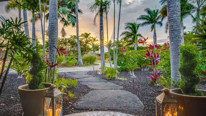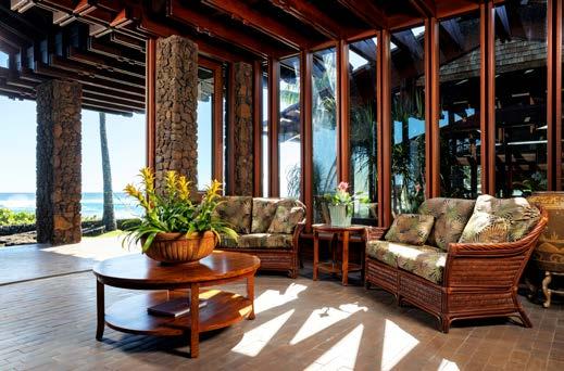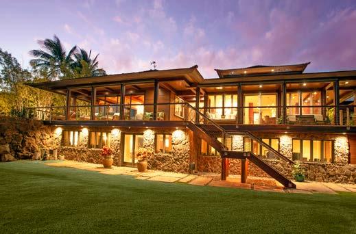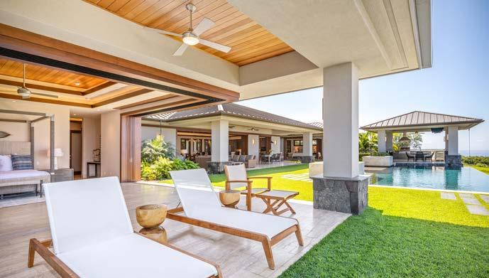 elegant Hokulia Estate sits along the golf course fairway within the exclusive Hokulia community, an invitation-only private club with 1.15 acres of commanding ocean and coastline views. Luxury fi nishes and features grace the interior, from the high ceilings with rich wood paneling to the artful awardwinning built-in cabinet screens.