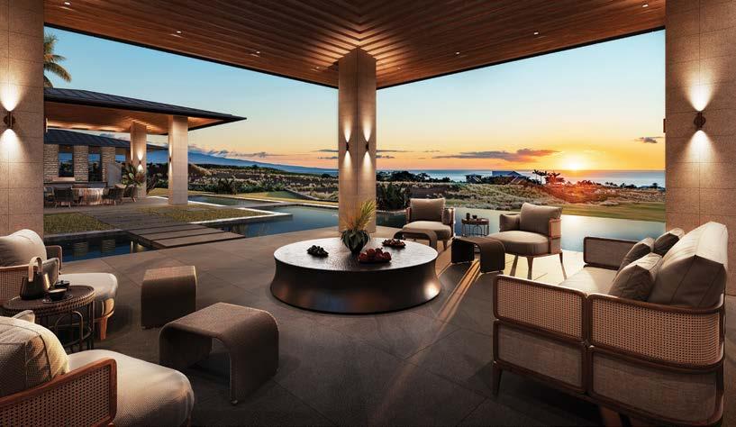 e Club at Hokuli‘a is an exclusive residential club community nestled along the Kona Coastline. Encompassing a 1,260-acre luxury residential community, Hokuli‘a is renowned for its one- to two-acre sustainable agricultural lots. e membership enjoys a fitness center, tennis & pickle ball courts, a club pool, and an open-air dining pavilion with a bar, Jack Nicklaus Signature 18-hole golf course, shoreline park and ocean access.