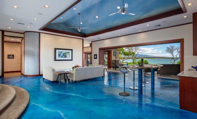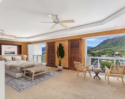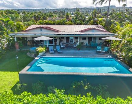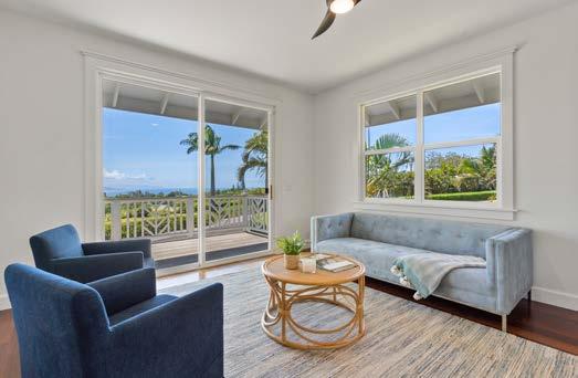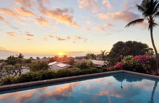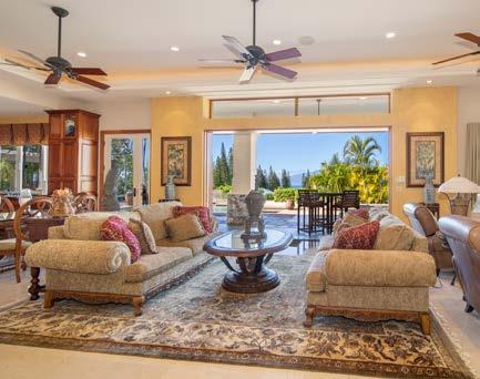 is exceptional Upcountry property is located in the gated Mauna‘olu Plantation between Paia and Makawao. e expansive residence offers a luxurious living experience. e main home features two lavish primary suites with stunning ocean and mountain views. e lower level includes three separate large garages for parking or storage. Additionally, there is a stylish ohana with its own detached garage and courtyard (1,008 SQFT | 3BR/2BA | 230 SQFT Lanai). e property is conveniently located near schools, dining, shopping, and the beautiful beaches of the North Shore. With a harmonious blend of tranquility and elegance, this property is perfect for discerning buyers seeking a refi ned lifestyle.