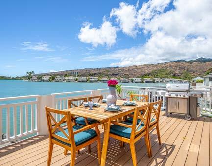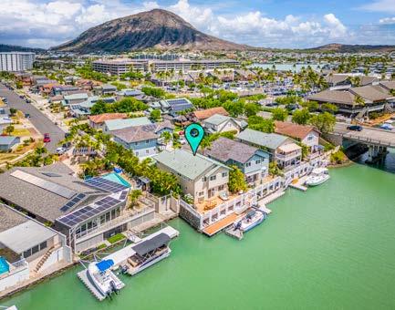Discover your dream coastal retreat in the heart of Hawaii Kai Marina! is property offers a rare marina-front opportunity in a gated community. Wake up to breathtaking views over tranquil waters, step onto your boat for adventures from your own backyard, and end the day with a spectacular sunset. is haven boasts a 40 FT dock attached to a 535 SQFT marina deck. e two-story home has been meticulously remodeled with over $400k in elegant & functional upgrades. Natural light floods the space, thanks to high ceilings & open floor plan, creating a modern and sophisticated ambiance. e spacious dining, living, and master suite offer unobstructed views of the marina.