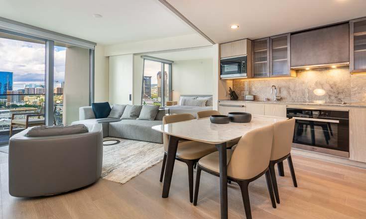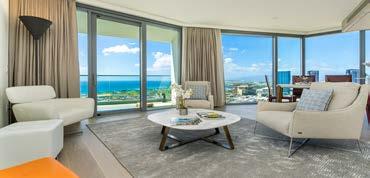 is luxurious Penthouse offers breathtaking ocean and mountain views from an expansive, open floor plan with 10-ft high ceilings. With more than 2,650 square feet of living space, this three bed, three bath home features upgrades including his/hers walk-in closets, a large wine chiller, convection and steam ovens, and laundry room with a separate service entrance. Enjoy the resort-like amenities that ONE Ala Moana has to offer including theater room, gym, infi nitypool and hot tubs, several barbecue areas and more. ONE Ala Moana is conveniently located above Ala Moana Shopping Center and near restaurants, entertainment, and Ala Moana Beach Park.