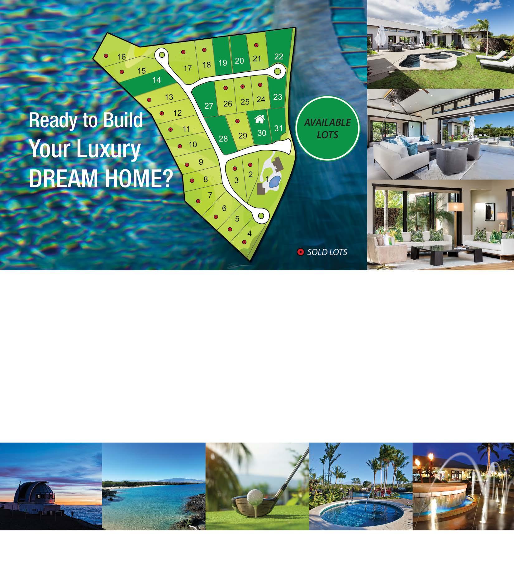e Amaui Villas enjoy one of the most prominent and desirable sites within the prestigious Hapuna Estates. is begins with incomparable views across the Hapuna Golf Course to all of the Kohala Coast, all the way to Maui on the horizon. Sited at the top of the Mauna Kea Resorts, the Amaui Villas offer a very private lifestyle. Along with fitness and a swimming pool is a fantastic waterslide certain to be enjoyed by kids of all ages. e clubhouse is steps from each villa, and access is included with ownership. Homeowners can also enjoy the resort amenities such as beach and pool services, fitness, golf, tennis and dining through membership in the Club at Mauna Kea Resort. e fi rst phase will be completed in winter 2023! Now taking phase 2 contracts.