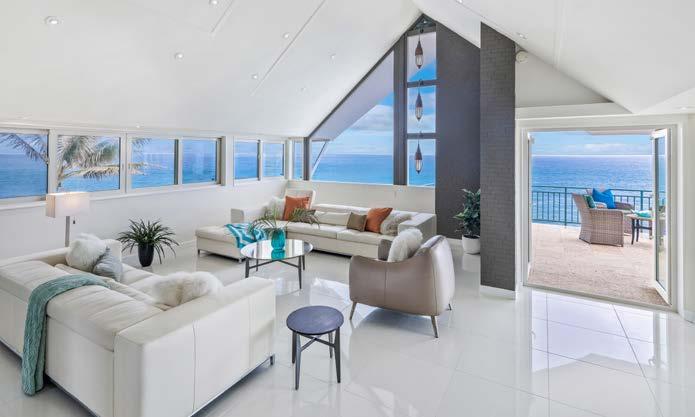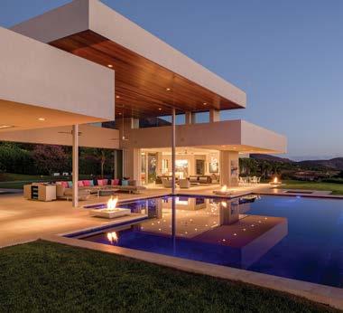 of the finest architectural and interior design materials. e exquisitely furnished home of approximately 7,200 sq. ft. under roof features 2 Master Suites in the Main Residence and 2 separate Guest Suites. e Great Room opens to an expansive lanai and lawn area with an infinity edge lap pool and jacuzzi.