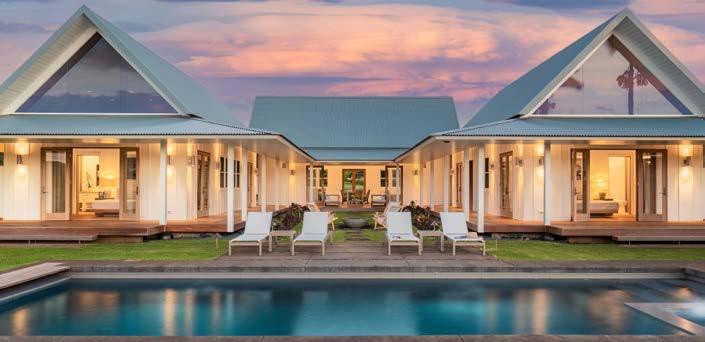 “ e Sugar House,” located in the exclusive Poipu Aina Estates neighborhood on the south shore of Kauai, minutes from world-class beaches, dining, shopping and outdoor activities. is architecturally-designed, single-story home offers exceptional craftsmanship accentuated with charming plantation-era design elements of Hawaii’s past. e property boasts mountain and ocean horizon views and is perfectly positioned to capture the prevailing trade winds. is home is designed for entertaining, with nearly 3000 sqft of interior space, 1800+ sqft of exterior covered lanai, a true chef’s kitchen, large heated saltwater pool & spa, fi re pit, 3-car garage, and three private suites to retire to at the end of the evening.