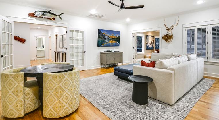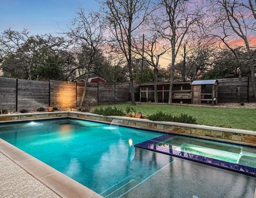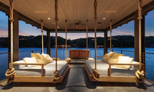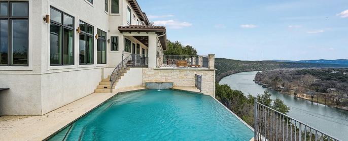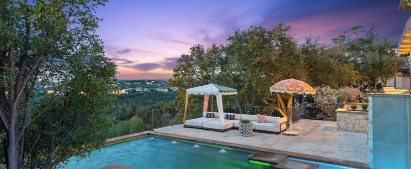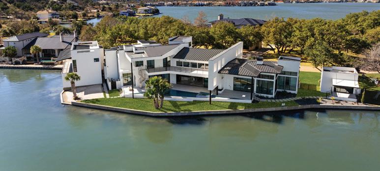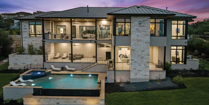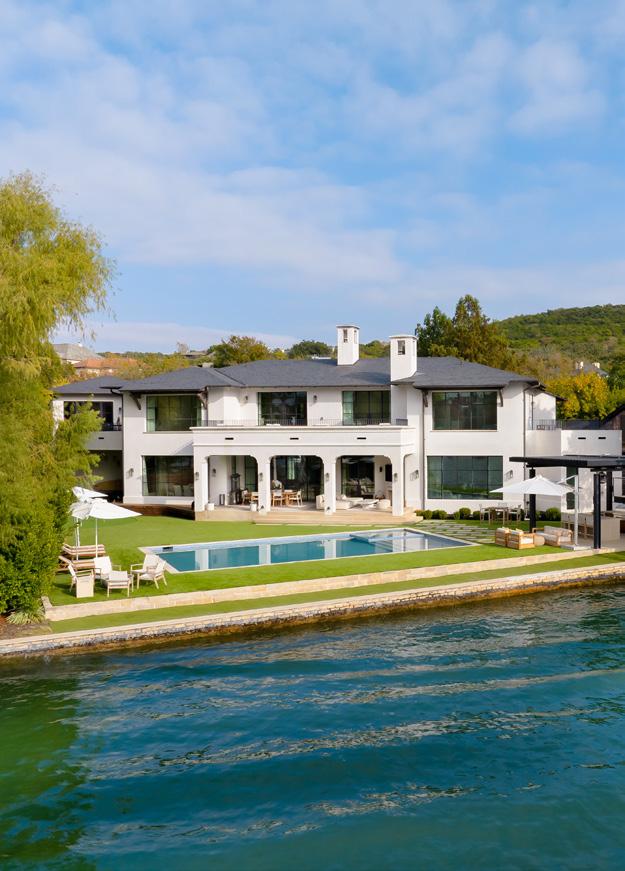 Our stunning cover home on page 35, presented by Kumara Wilcoxon, Kuper Sotheby’s International Realty , showcases the vision of renowned architect David Shiflet and master builder Risinger Build. This six-bedroom estate blends natural beauty with sophisticated design. The property’s two-story boat dock captures panoramic lake vistas, while the owner’s suite features a plunge pool and steam shower. From the putting green to the Crestron system, every detail reflects excellence in this landmark of Austin lakeside living.