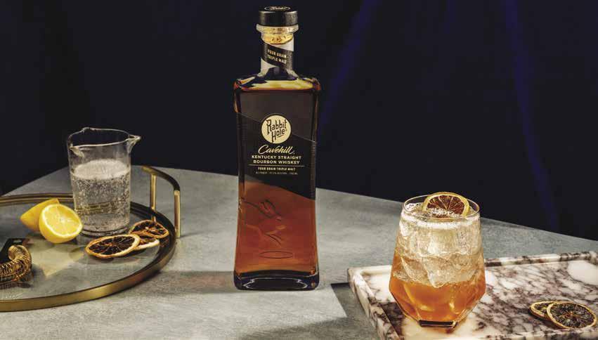 Interested imbibers can locate Cavehill on the Rabbit Hole website’s store locator, and, upon procuring a bottle, craft the perfect bourbon spritz. Combine two parts each Cavehill, passionfruit liqueur, and orange aperitivo with one part each simple syrup and lime juice. Shake well, pour over ice, then top with soda and a lemon slice. rabbitholedistillery.com