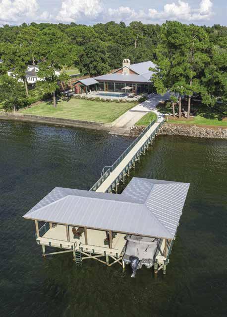 • Indoor-Outdoor Entertaining Spaces | Outdoors, a deep-water dock, infinity-edge pool, summer kitchen, stone spa, and pool bath set the stage for effortless entertaining. Inside, natural light pours through oversized transom windows and French doors, highlighting coffered ceilings, a gourmet kitchen, butler’s pantry, and formal dining - all opening to outdoor living for year-round enjoyment. Upstairs, four ensuite bedrooms with water views — including one with a private balcony — are complemented by a bunkroom, loft lounge, and office, offering ample space to live, work, and host with ease.