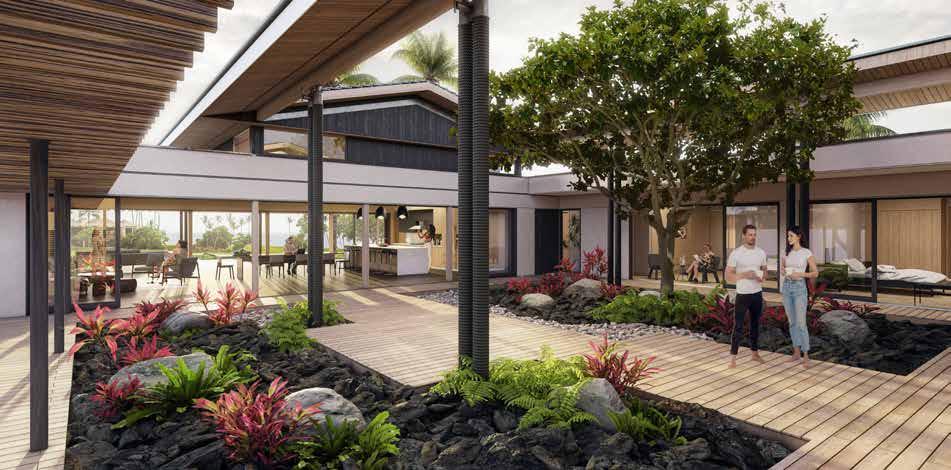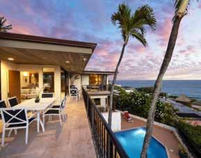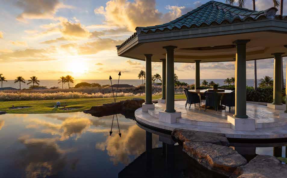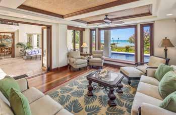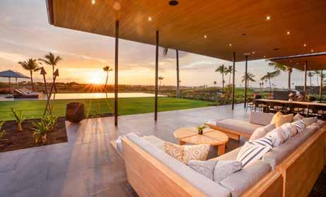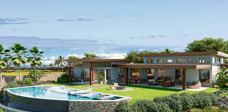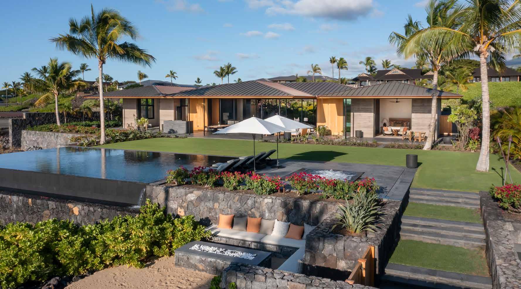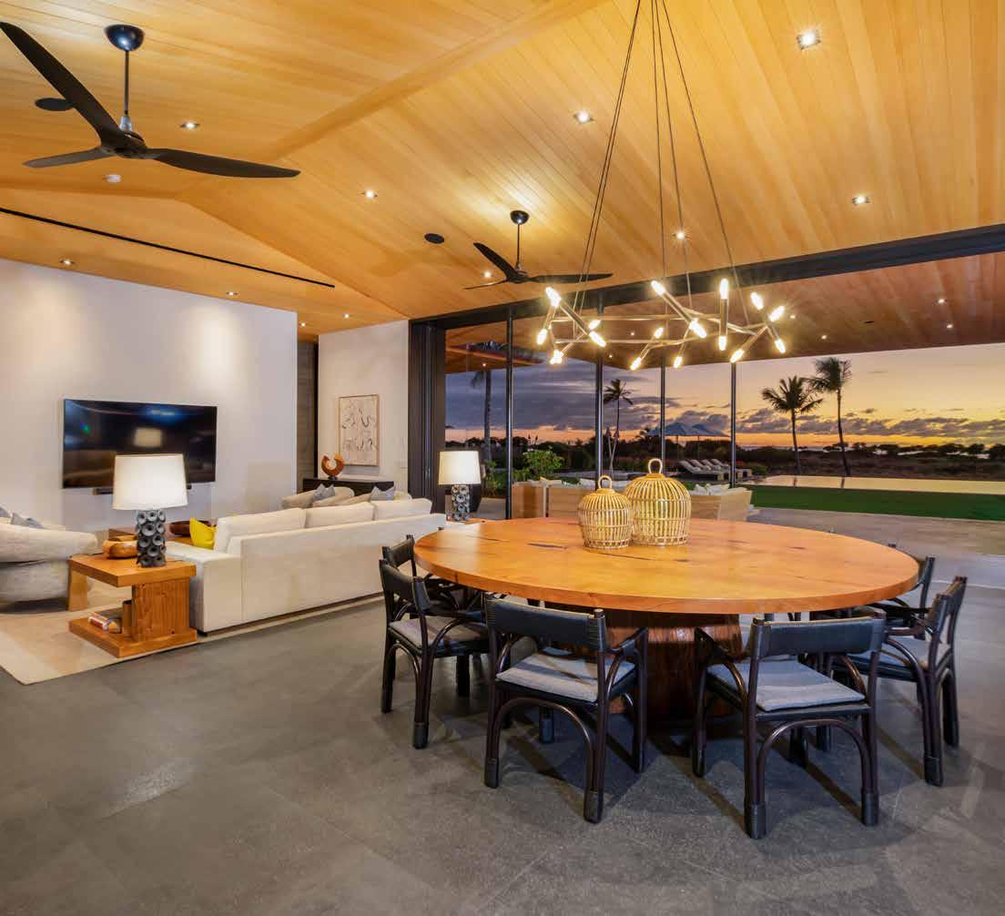 craftsmanship. e outdoor living area is a private oasis, complete with a dramatic infinity-edge pool and spa, fire pit, sun deck, and tropical landscaping, all set on 1.17 acres with coastal, sunset, and fairway views. Just steps from Kohanaiki’s 67,000-sq-ft Clubhouse, Hale Kai Apo offers world-class golf, fine dining, spa services, and resort amenities in an extraordinary coastal retreat. is residence embodies the seamless indoor-outdoor lifestyle that defines luxury island living.