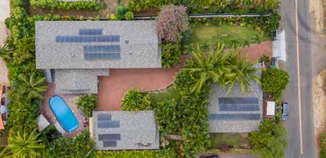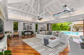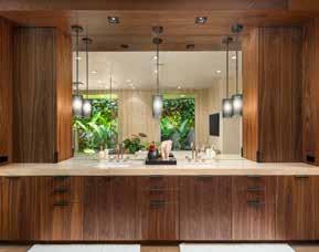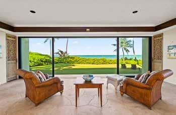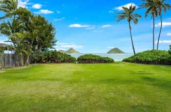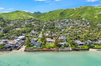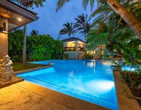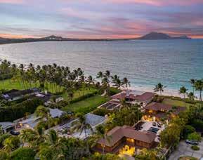 PERFECT SYMMETRY in every detail is the hallmark of this remarkable estate on the PERFECT sandy beach along Kailua Bay. is grand home offers the ultimate in comfort, luxury and flexibility. e famed architect, Peter Vincent, took maximum advantage of the huge parcel by positioning the luxurious main home on the beachside of the property while setting the equally luxurious guest house on the opposite side, separating the two with an infinity edge pool, expansive hardscape, tall landscaping and dramatic outdoor lighting—a magical private resort. e separation allows for a delightful play of light and breeze throughout the property plus unexpected ocean and mountain views from both homes.