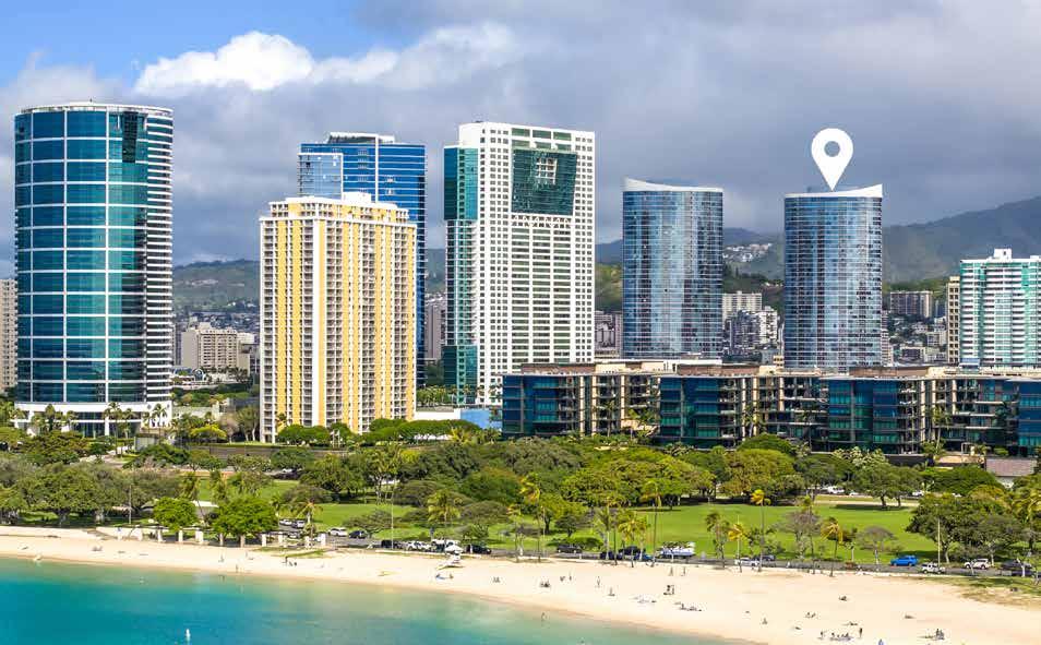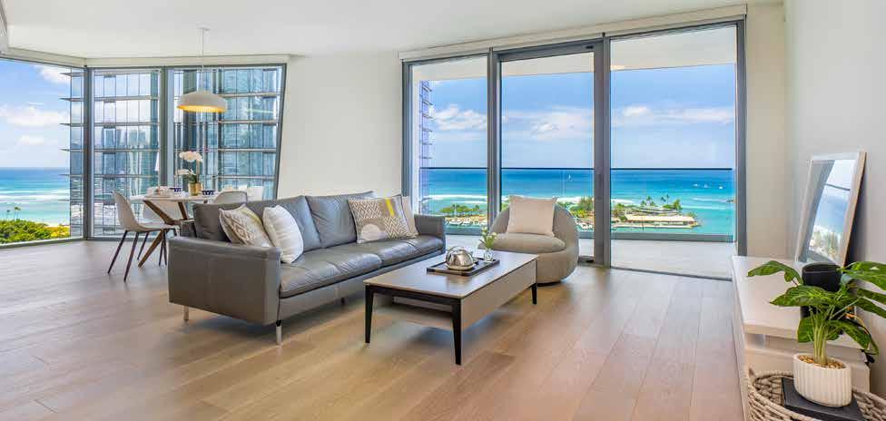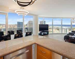 Rarely available, fully furnished high-floor unit in Moana Pacific’s east tower with stunning views of Diamond Head, Magic Island, the ocean, city skyline, and yacht harbor. Enjoy motorized window shades, cool unobstructed breezes, and Waikiki’s Friday fi reworks. Comes with two side-by-side parking stalls near the 2nd level elevator (C2084/C2085). In the Ala Moana/Kakaako corridor, Moana Pacific offers top amenities—private theater, 24-hr security, fitness center, tennis, pickleball & more. VA-approved, pet friendly, and urban island living at its fi nest!