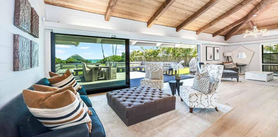 THE CROWN JEWEL OF KAHALA. Welcome to a rare oceanfront estate in the heart of Kahala, an incredibly private retreat spanning 1.3 acres w/171 ft. of prized frontage. is newly reimagined single-level residence presents a magnificent retreat blending contemporary design w/ the natural beauty of Hawai‘i. A gated entry opens to an impressive motor court, leading inside where soaring ceilings & walls of glass showcase endless ocean views. e expansive primary suite w/ spainspired bath evokes the feel of a 5-star resort. Designed for effortless indoor-outdoor living & impossible to duplicate, this is truly oceanfront living at its finest.
