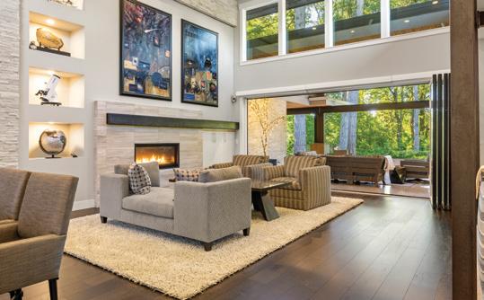 • Grand, Flexible Interiors: Oversized Owner’s Suite with vaulted ceilings, fireplace, sauna, and optional gym or office. Gourmet kitchen and great room flow to multiple dining spaces.