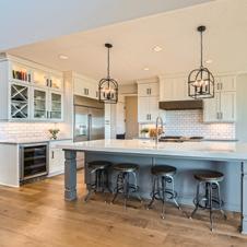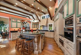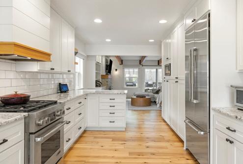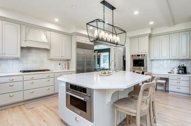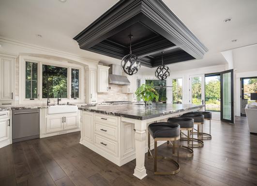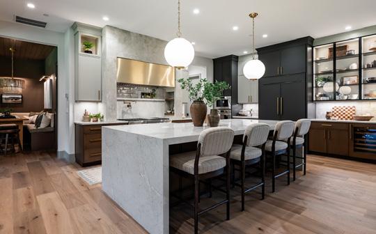 • Chef’s kitchen with ceiling-height cabinetry, quartz island, premium appliances