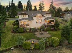 Storybook charm meets luxury living in this stunning 4,706 SqFt estate nestled on a private acre in a prestigious gated Ridgefield community. From the grand entry with soaring ceilings to the elegant dual staircases, every detail exudes sophistication. The main-level primary suite offers convenience and comfort, while the spacious bonus/media room with wet bar and huge movie screen with projector is perfect for entertaining. Enjoy cozy evenings by one of two fireplaces, or host year-round gatherings on the expansive wrap-around back patio featuring a built-in gazebo and BBQ. With an oversized 3-car garage and refined touches throughout, this 4-bedroom home is truly a rare find.